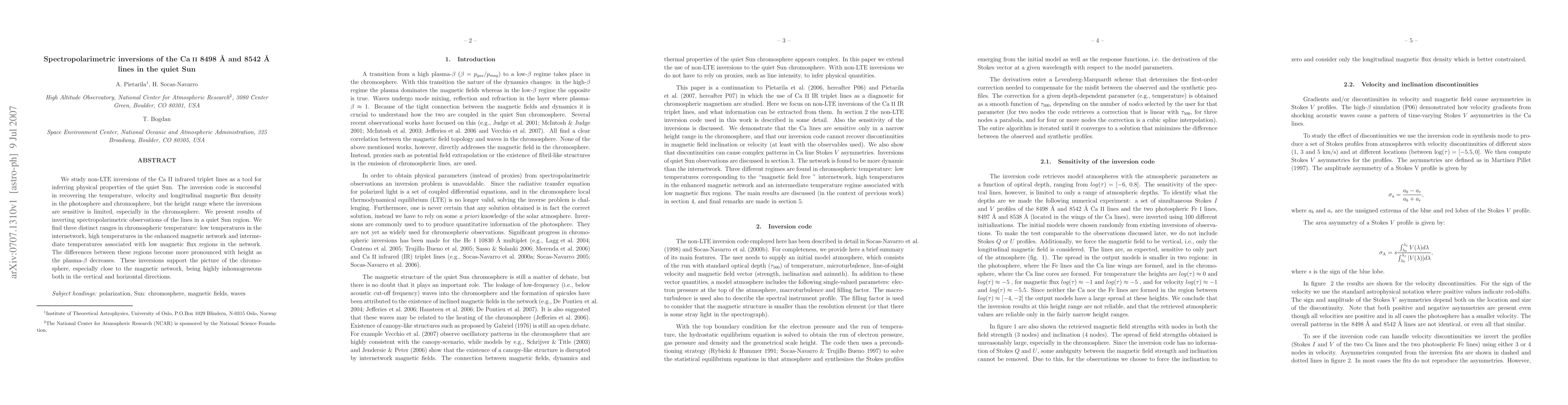 We study non-LTE inversions of the Ca II infrared triplet lines as a tool for inferring physical properties of the quiet Sun. The inversion code is successful in recovering the temperature, velocity and longitudinal magnetic flux density in the photosphere and chromosphere, but the height range where the inversions are sensitive is limited, especially in the chromosphere. We present results of inverting spectropolarimetric observations of the lines in a quiet Sun region. We find three distinct ranges in chromospheric temperature: low temperatures in the internetwork, high temperatures in the enhanced magnetic network and intermediate temperatures associated with low magnetic flux regions in the network. The differences between these regions become more pronounced with height as the plasma-$\beta$ decreases. These inversions support the picture of the chromosphere, especially close to the magnetic network, being highly inhomogeneous both in the vertical and horizontal directions.