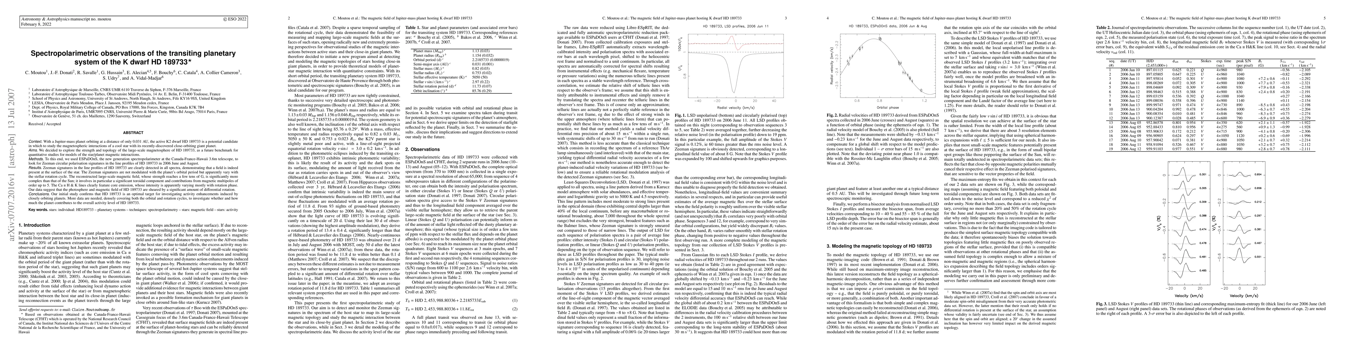 This study uses spectropolarimetry to detect Zeeman signatures of the active K2 dwarf HD 189733, revealing a complex magnetic field with a toroidal component and multipole contributions. The magnetic field's variability correlates with stellar rotation rather than the planet's orbit, indicating significant differential rotation.