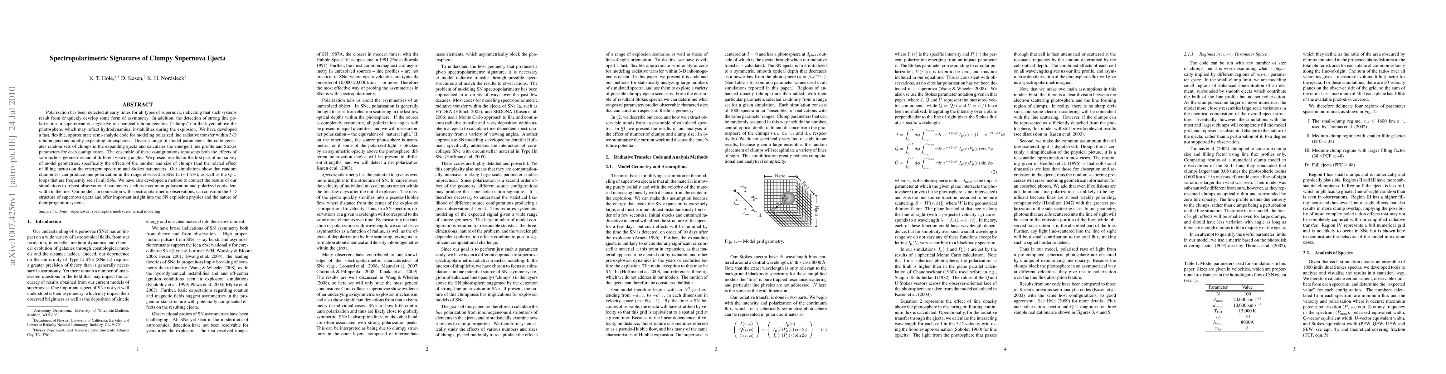 Polarization has been detected at early times for all types of supernova, indicating that such systems result from or quickly develop some form of asymmetry. In addition, the detection of strong line polarization in supernovae is suggestive of chemical inhomogeneities ("clumps") in the layers above the photosphere, which may reflect hydrodynamical instabilities during the explosion. We have developed a fast, flexible, approximate semi-analytic code for modeling polarized line radiative transfer within 3-D inhomogeneous rapidly-expanding atmospheres. Given a range of model parameters, the code generates random sets of clumps in the expanding ejecta and calculates the emergent line profile and Stokes parameters for each configuration. The ensemble of these configurations represents both the effects of various host geometries and of different viewing angles. We present results for the first part of our survey of model geometries, specifically the effects of the number and size of clumps (and the related effect of filling factor) on the emergent spectrum and Stokes parameters. Our simulations show that random clumpiness can produce line polarization in the range observed in SNe Ia (~1-2%), as well as the Q-U loops that are frequently seen in all SNe. We have also developed a method to connect the results of our simulations to robust observational parameters such as maximum polarization and polarized equivalent width in the line. Our models, in connection with spectropolarimetric observations, can constrain the 3-D structure of supernova ejecta and offer important insight into the SN explosion physics and the nature of their progenitor systems.