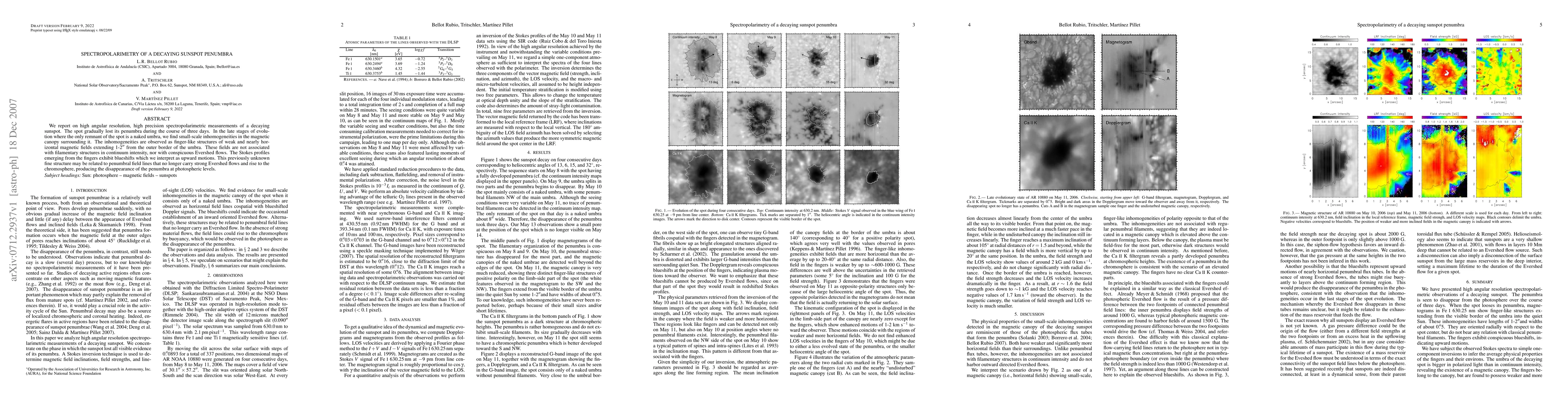 This study uses high-resolution spectropolarimetry to observe a decaying sunspot, revealing small-scale inhomogeneities in the magnetic canopy surrounding the umbra as finger-like structures of weak, horizontal magnetic fields. These structures exhibit blueshifts, suggesting upward motions, potentially linked to the disappearance of the penumbra.