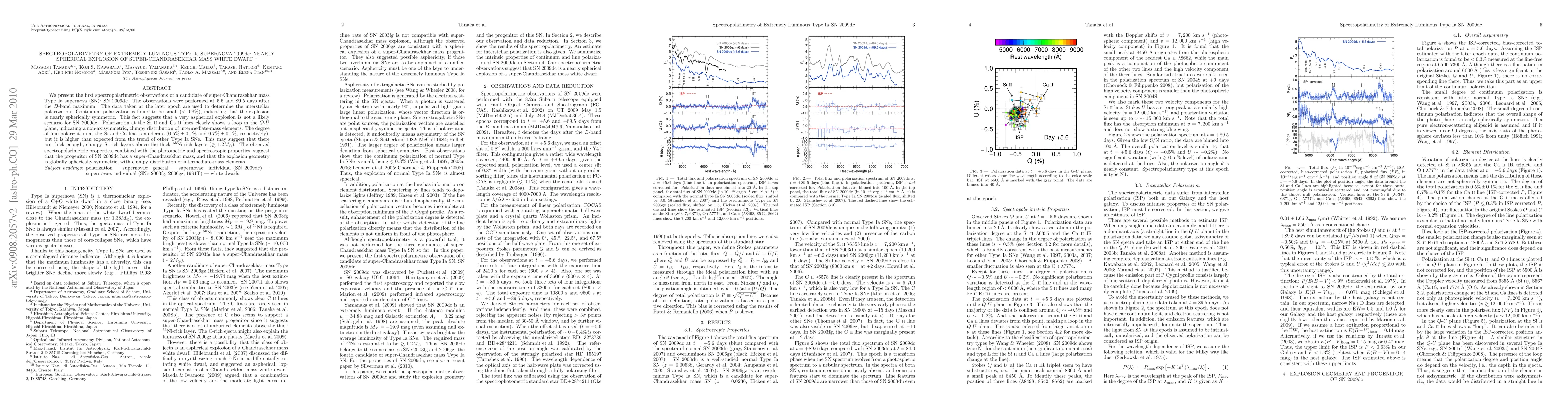 This paper reports spectropolarimetric observations of the super-Chandrasekhar mass Type Ia supernova SN 2009dc, revealing a nearly spherical explosion with small (<0.3%) continuum polarization. The moderate line polarization suggests a clumpy distribution of intermediate-mass elements, indicating a complex structure above the nickel-rich layers.
