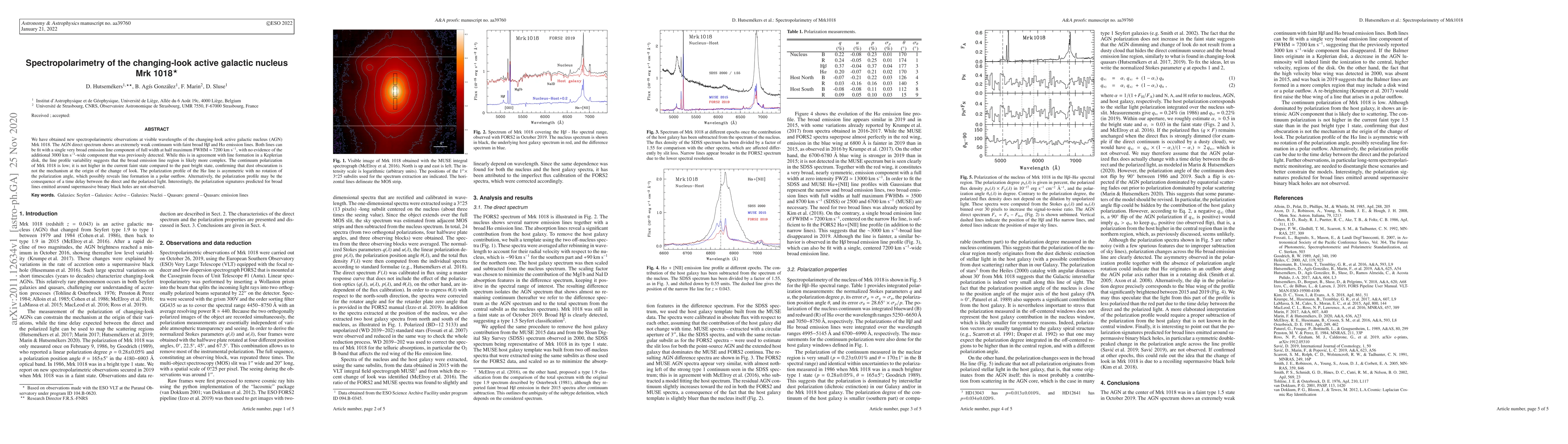 New spectropolarimetric observations of Mrk 1018 reveal a single broad emission line component with no additional component, contradicting previous findings. The polarization profile shows asymmetry without rotation, suggesting line formation in a polar outflow or time delay between direct and polarized light.