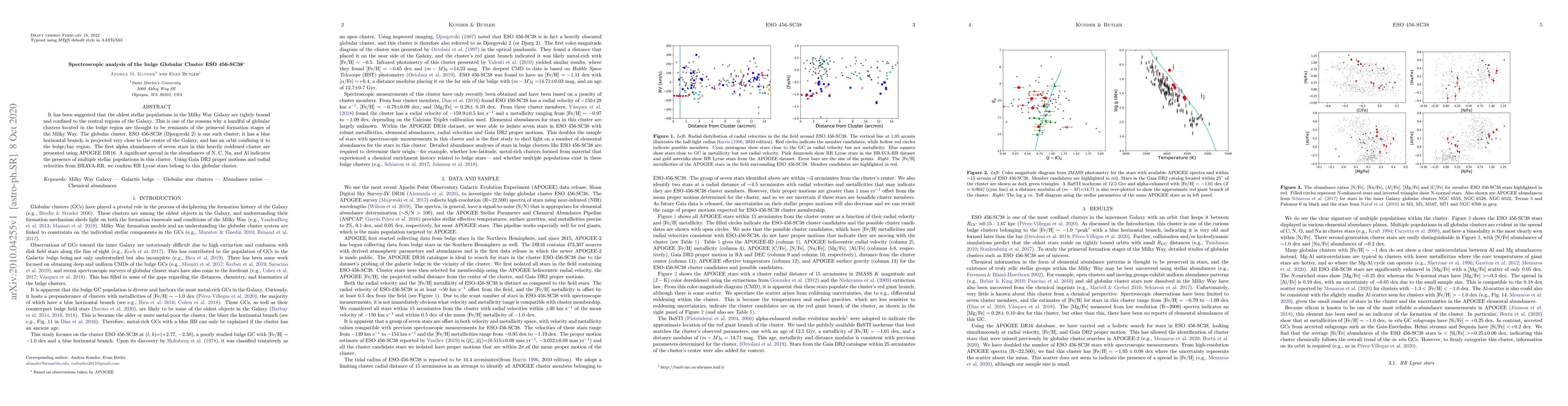 It has been suggested that the oldest stellar populations in the Milky Way Galaxy are tightly bound and confined to the central regions of the Galaxy. This is one of the reasons why a handful of globular clusters located in the bulge region are thought to be remnants of the primeval formation stages of the Milky Way. The globular cluster, ESO 456-SC38 (Djorgovski~2) is one such cluster; it has a blue horizontal branch, is projected very close to the center of the Galaxy, and has an orbit confining it to the bulge/bar region. The first alpha abundances of seven stars in this heavily reddened cluster are presented using APOGEE DR16. A significant spread in the abundances of N, C, Na, and Al indicates the presence of multiple stellar populations in this cluster. Using Gaia DR2 proper motions and radial velocities from BRAVA-RR, we confirm RR Lyrae stars belong to this globular cluster.