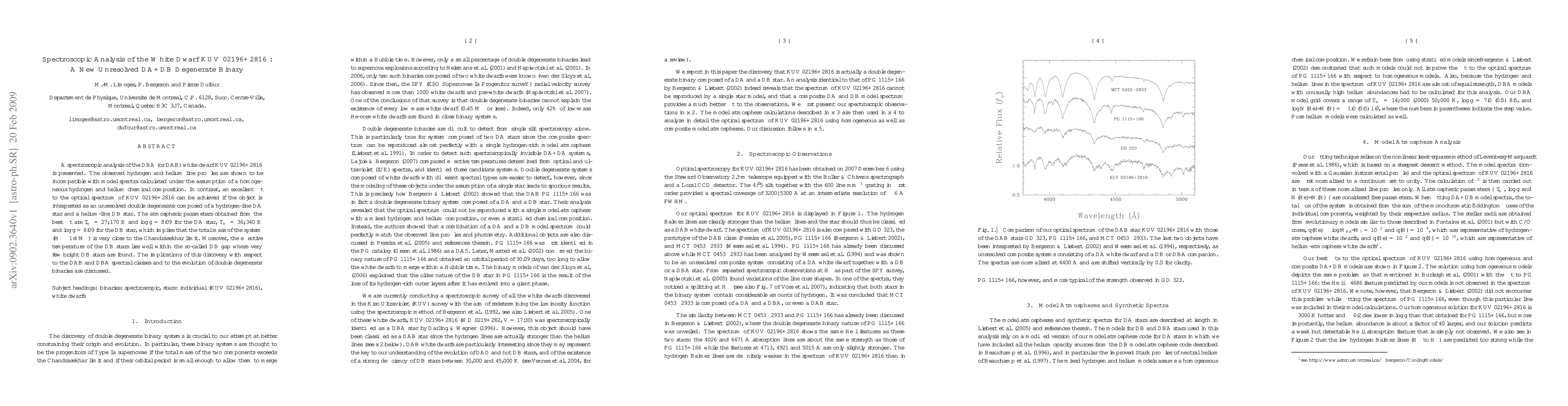 A spectroscopic analysis of the DBA (or DAB) white dwarf KUV 02196+2816 is presented. The observed hydrogen and helium line profiles are shown to be incompatible with model spectra calculated under the assumption of a homogeneous hydrogen and helium chemical composition. In contrast, an excellent fit to the optical spectrum of KUV 02196+2816 can be achieved if the object is interpreted as an unresolved double degenerate composed of a hydrogen-line DA star and a helium-line DB star. The atmospheric parameters obtained from the best fit are Teff=27,170 K and log g=8.09 for the DA star, Teff=36,340 K and log g=8.09 for the DB star, which implies that the total mass of the system (M~1.4 Msol) is very close to the Chandrasekhar limit. Moreover, the effective temperature of the DB stars lies well within the so-called DB gap where very few bright DB stars are found. The implications of this discovery with respect to the DAB and DBA spectral classes and to the evolution of double degenerate binaries are discussed.