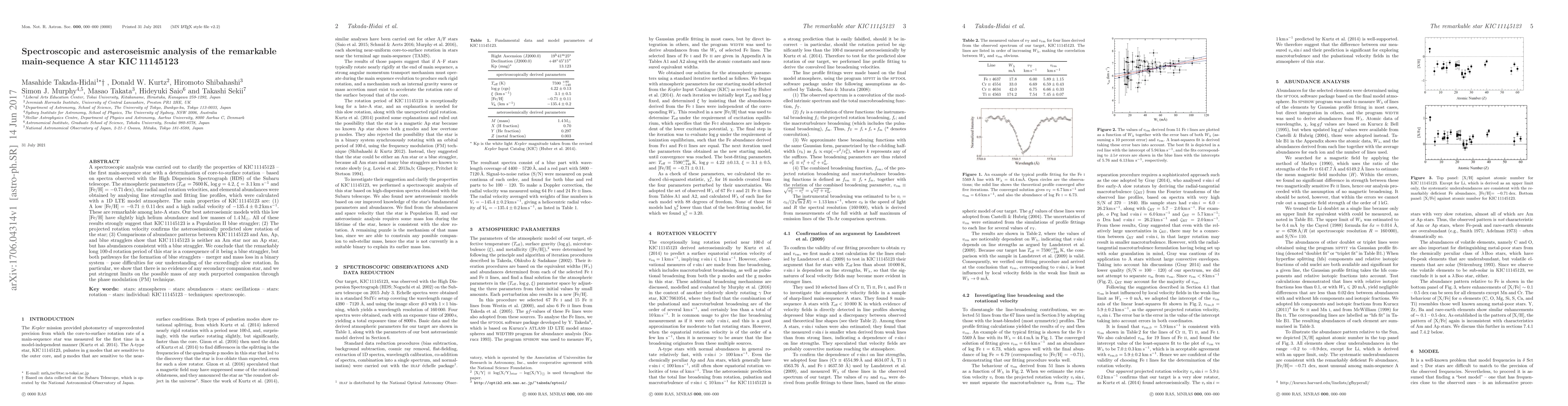 This paper presents spectroscopic and asteroseismic analysis of KIC 11145123, a unique main-sequence star with a remarkably slow rotation period. The study reveals it to be a Population II blue straggler with low metallicity and high radial velocity, challenging conventional formation pathways for such stars.