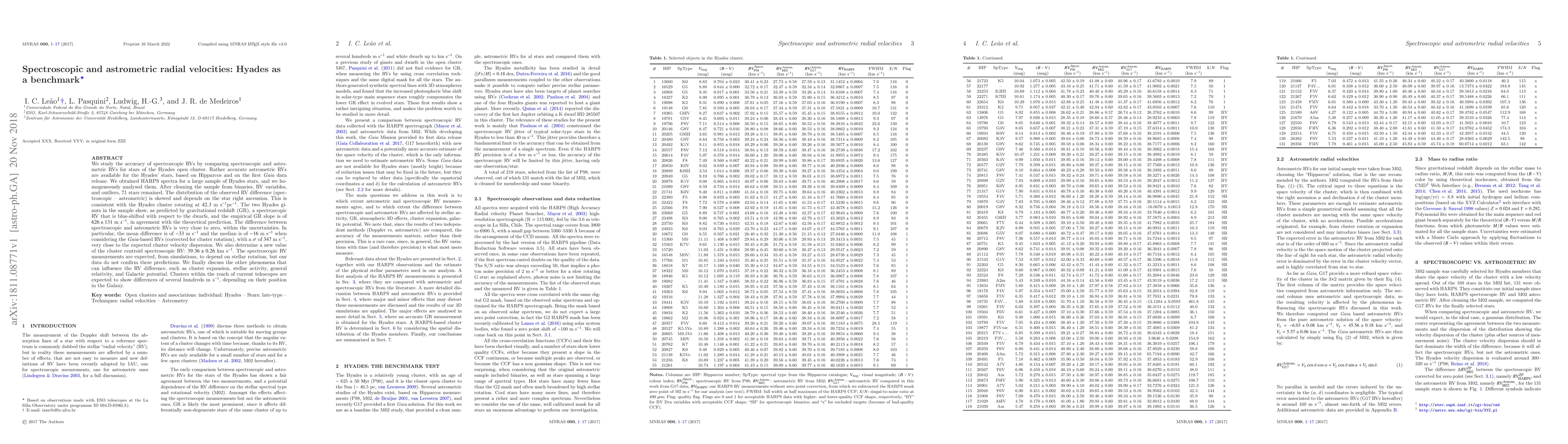 This paper compares spectroscopic and astrometric radial velocities for Hyades stars, finding minimal differences and validating the accuracy of spectroscopic methods. The study also confirms gravitational redshift predictions and discusses factors influencing radial velocity discrepancies.
