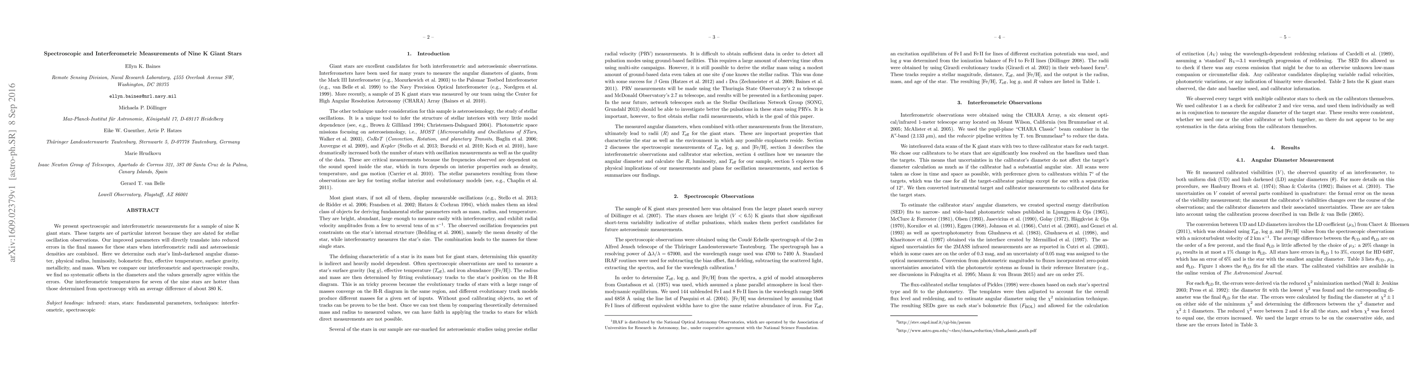 The research presents a detailed comparison of interferometric and spectroscopic measurements for K giant stars, improving angular diameter precision and providing a foundation for more accurate mass determination through stellar oscillation studies.