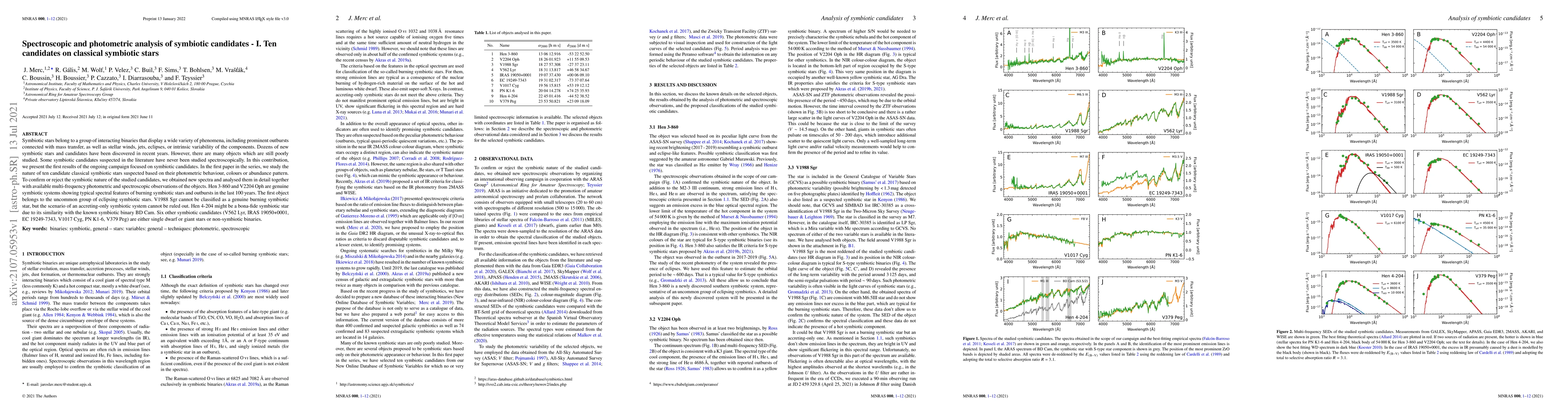 This paper investigates ten candidates suspected to be classical symbiotic stars based on photometric behavior and other indicators. Spectroscopic and photometric analysis confirmed the symbiotic nature of Hen 3-860 and V2204 Oph, while V1988 Sgr may be an accreting-only system; six others are non-symbiotic stars or binaries.