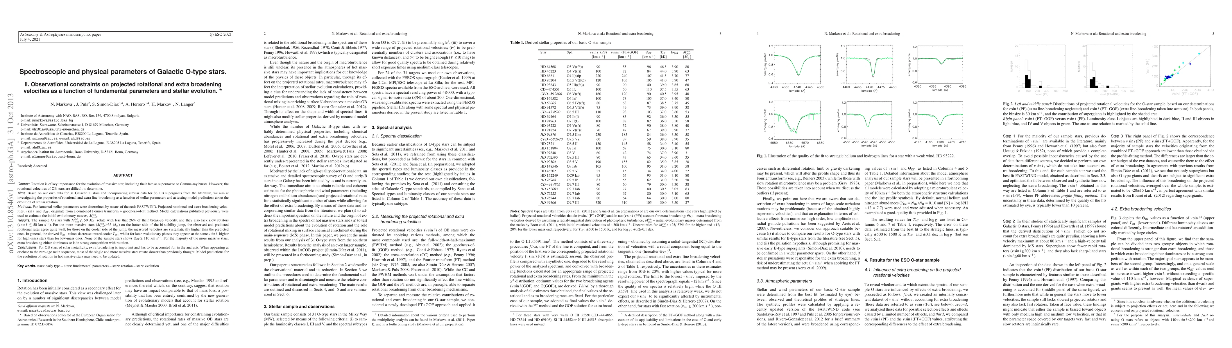 Rotation is of key importance for the evolution of hot massive stars, however, the rotational velocities of these stars are difficult to determine. Based on our own data for 31 Galactic O stars and incorporating similar data for 86 OB supergiants from the literature, we aim at investigating the properties of rotational and extra line-broadening as a function of stellar parameters and at testing model predictions about the evolution of stellar rotation. Fundamental stellar parameters were determined by means of the code FASTWIND. Projected rotational and extra broadening velocities originate from a combined Ft + GOF method. Model calculations published previously were used to estimate the initial evolutionary masses. The sample O stars with Minit > 50 Msun rotate with less that 26% of their break-up velocity, and they also lack objects with v sin i < 50 km/s. For the stars with Minit > 35 Msun on the hotter side of the bi-stability jump, the observed and predicted rotational rates agree quite well; for those on the cooler side of the jump, the measured velocities are systematically higher than the predicted ones. In general, the derived extra broadening velocities decrease toward cooler Teff, whilst for later evolutionary phases they appear, at the same v sin i, higher for high-mass stars than for low-mass ones. None of the sample stars shows extra broadening velocities higher than 110 km/s. For the majority of the more massive stars, extra broadening either dominates or is in strong competition with rotation. Conclusions: For OB stars of solar metallicity, extra broadening is important and has to be accounted for in the analysis. When appearing at or close to the zero-age main sequence, most of the single and more massive stars rotate slower than previously thought. Model predictions for the evolution of rotation in hot massive stars may need to be updated.