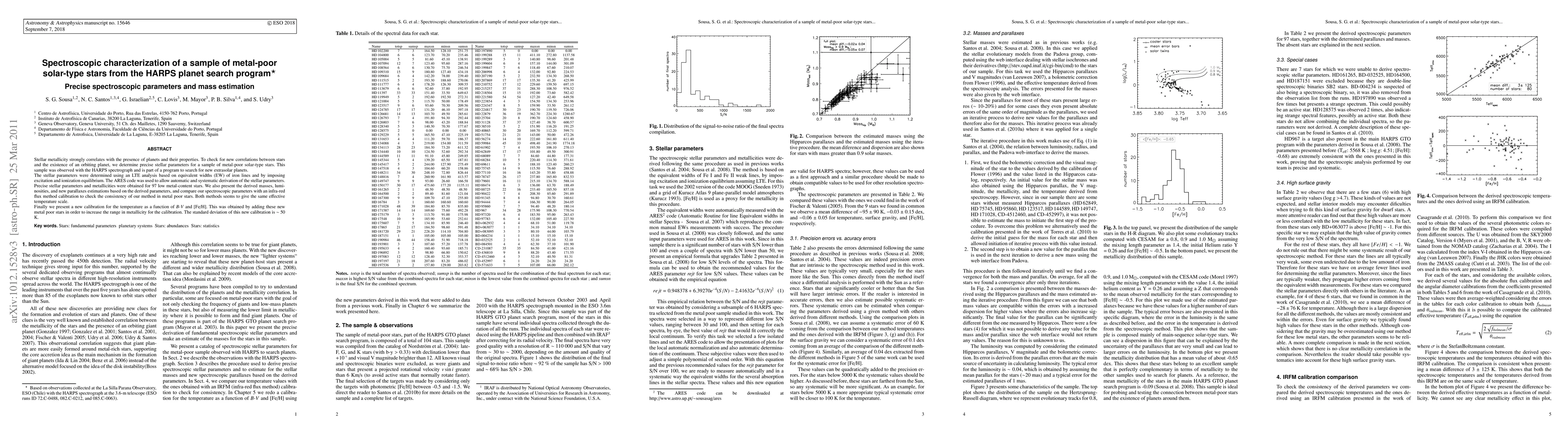This paper characterizes metal-poor solar-type stars using the HARPS spectrograph, determining precise stellar parameters and deriving masses, luminosities, and new parallax estimates. The study finds consistent effective temperature scales using both spectroscopic and infrared flux methods, and presents a new calibration for temperature based on \textit{B-V} and [Fe/H], with a standard deviation of approximately 50 K.
