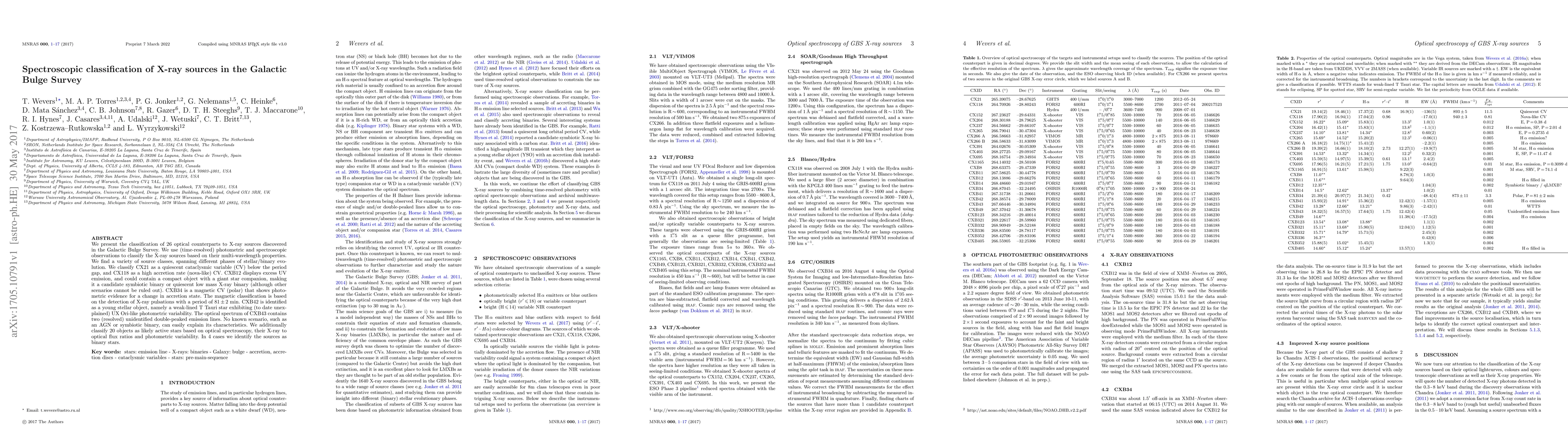 This paper classifies 26 X-ray sources in the Galactic Bulge Survey using multi-wavelength observations, identifying a range of stellar/binary evolution phases, including quiescent cataclysmic variables, nova-like CVs, symbiotic binaries, and young stellar objects. Notably, CXB43 presents unresolved emission lines without a clear classification.