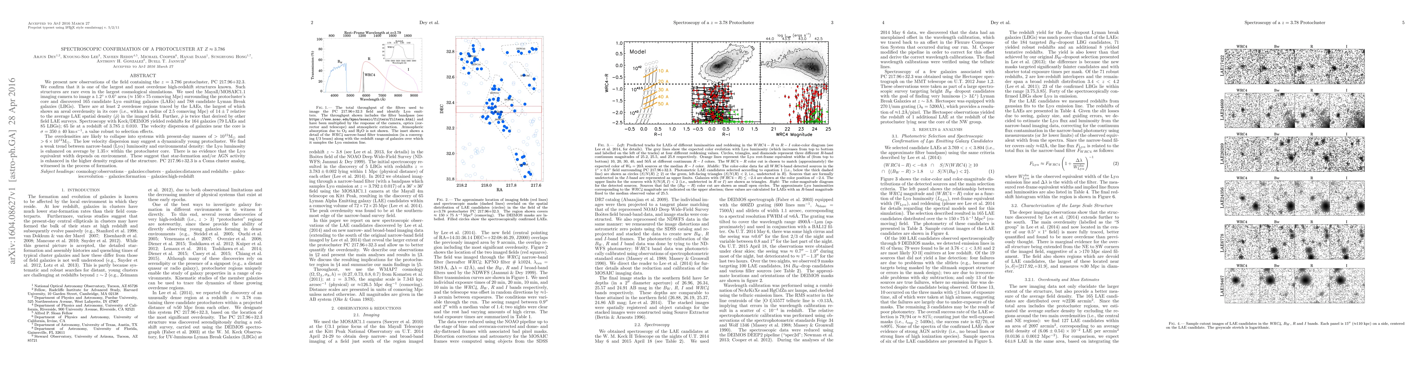 Researchers confirm a massive protocluster at z=3.786 with 165 candidate Lyman Alpha emitting galaxies and 788 candidate Lyman Break galaxies, suggesting it may form into massive galaxy clusters in the future.