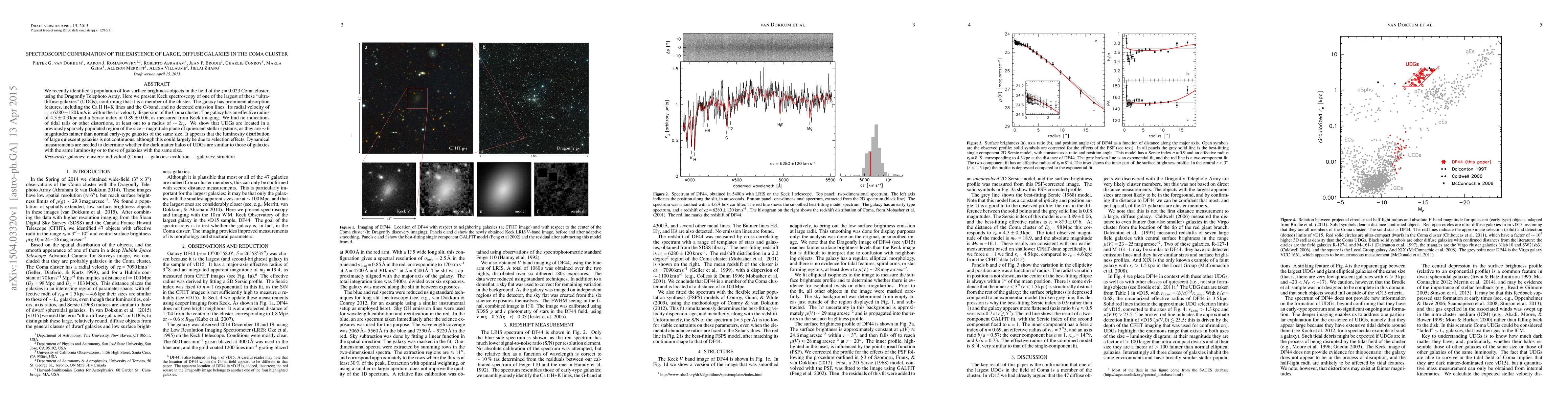 This paper confirms the existence of a large, diffuse galaxy in the Coma Cluster using Keck spectroscopy, identifying it as an ultra-diffuse galaxy with prominent absorption features but no emission lines, suggesting it is a member of the cluster. The study highlights the unique position of these galaxies in the size-magnitude plane of quiescent stellar systems.