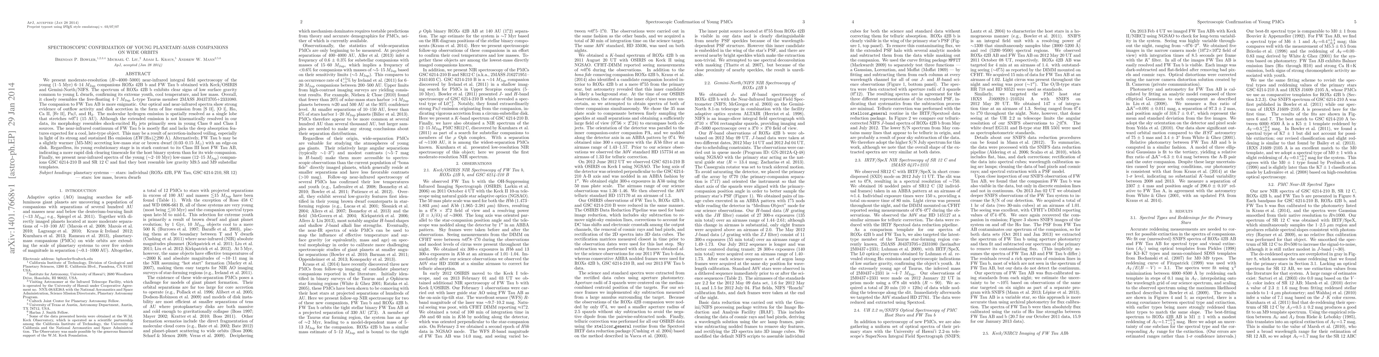This paper uses near-infrared spectroscopy to confirm the young, planetary-mass companions ROXs 42B b and FW Tau b, revealing low surface gravity and outflow activity in the latter, suggesting it may be an accreting low-mass star or brown dwarf. The study also characterizes young companions GSC 6214-210 B and SR 12 C, finding they resemble low-gravity M-type substellar objects.