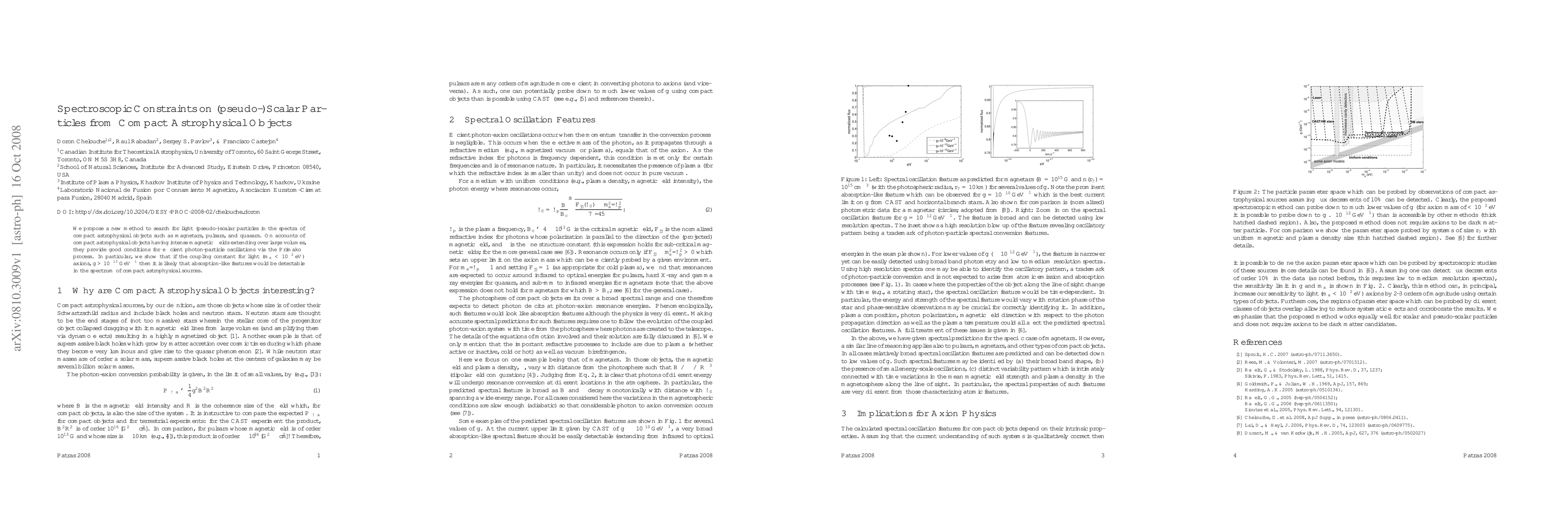 We propose a new method to search for light (pseudo-)scalar particles in the spectra of compact astrophysical objects such as magnetars, pulsars, and quasars. On accounts of compact astrophysical objects having intense magnetic fields extending over large volumes, they provide good conditions for efficient photon-particle oscillations via the Primakoff process. In particular, we show that if the coupling constant for light (<1e-2 eV) axions, g>1e-13 [1/GeV] then it is likely that absorption-like features would be detectable in the spectrum of compact astrophysical sources.