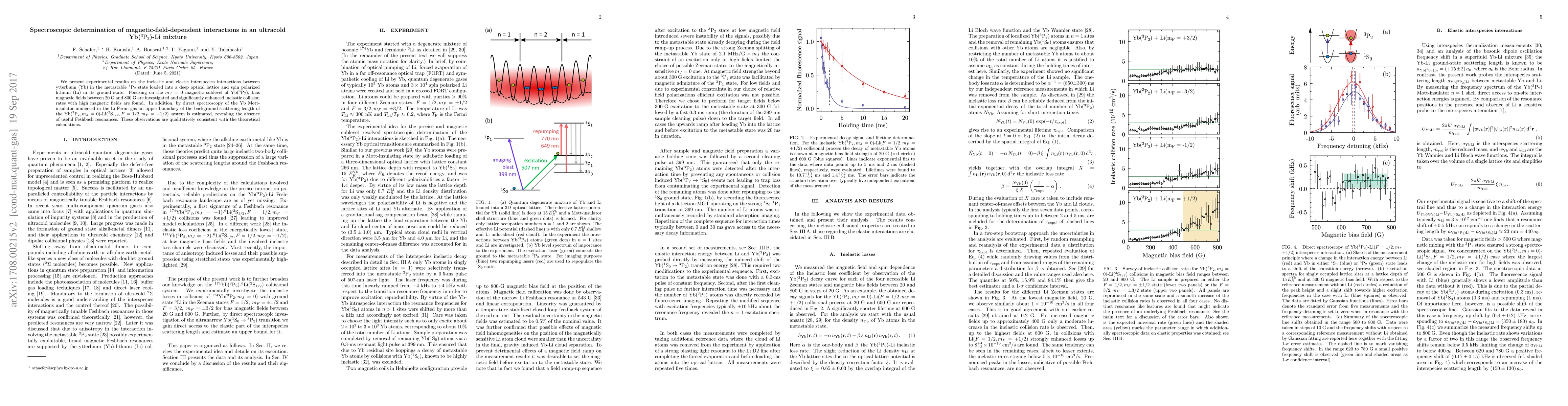 We present experimental results on the inelastic and elastic interspecies interactions between ytterbium (Yb) in the metastable ${}^3\mathrm{P}_2$ state loaded into a deep optical lattice and spin polarized lithium (Li) in its ground state. Focusing on the $m_J = 0$ magnetic sublevel of Yb(${}^3\mathrm{P}_2$), bias magnetic fields between 20 G and 800 G are investigated and significantly enhanced inelastic collision rates with high magnetic fields are found. In addition, by direct spectroscopy of the Yb Mott-insulator immersed in the Li Fermi gas an upper boundary of the background scattering length of the Yb(${}^3\mathrm{P}_2, m_J=0$)-Li(${}^2\mathrm{S}_{1/2}, F=1/2, m_F=+1/2$) system is estimated, revealing the absence of useful Feshbach resonances. These observations are qualitatively consistent with the theoretical calculations.