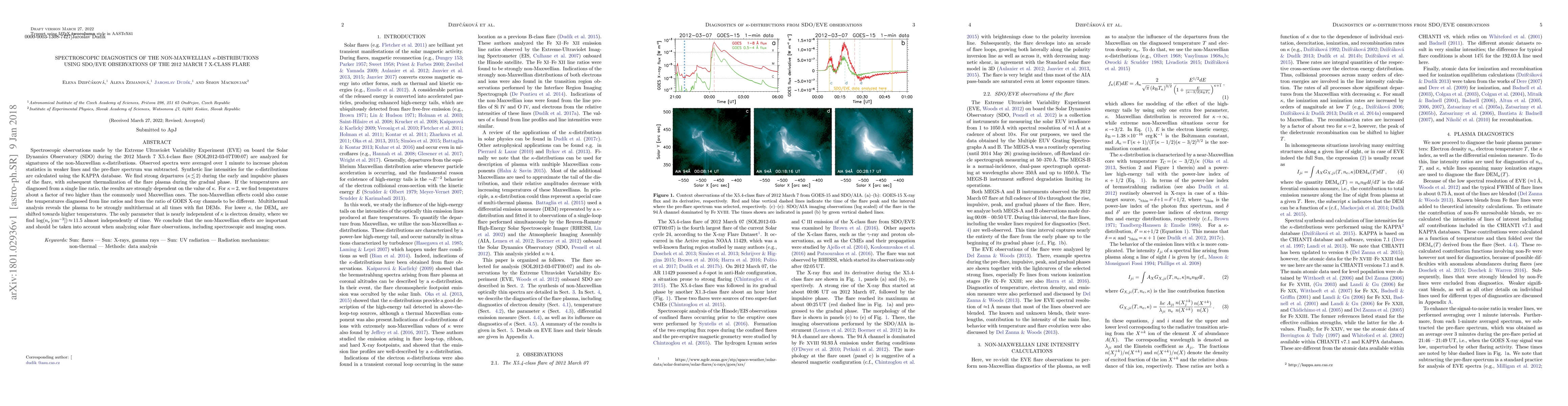 This research uses EVE/SDO observations of the 2012 March 7 X5.4-class flare to diagnose non-Maxwellian kappa-distributions. It finds strong departures from Maxwellian distributions during the flare's early phases, with subsequent thermalization. Temperature diagnostics show dependency on kappa, with single line ratios overestimating temperatures compared to Maxwellian assumptions. Multithermal analysis reveals consistently multithermal plasma with flat differential emission measures (DEMs). Electron density remains stable at approximately 11.5 across the flare, largely unaffected by kappa. The study concludes that non-Maxwellian effects significantly impact solar flare observations and should be considered in data analysis.