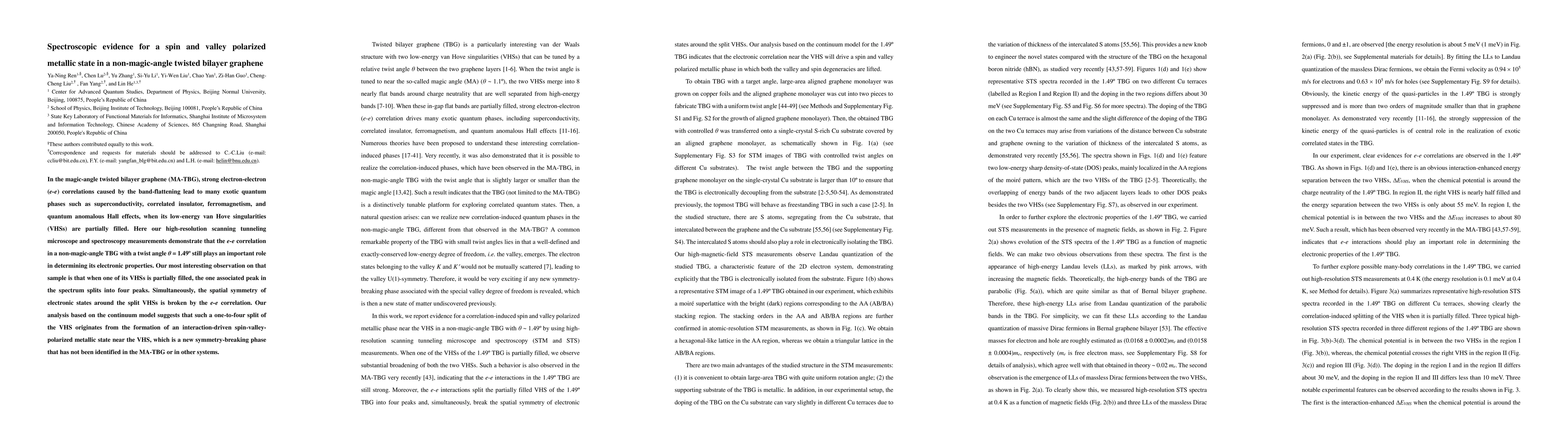 Researchers observed a spin-valley-polarized metallic state in non-magic-angle twisted bilayer graphene when a van Hove singularity is partially filled, revealing a new symmetry-breaking phase that hasn't been seen before.