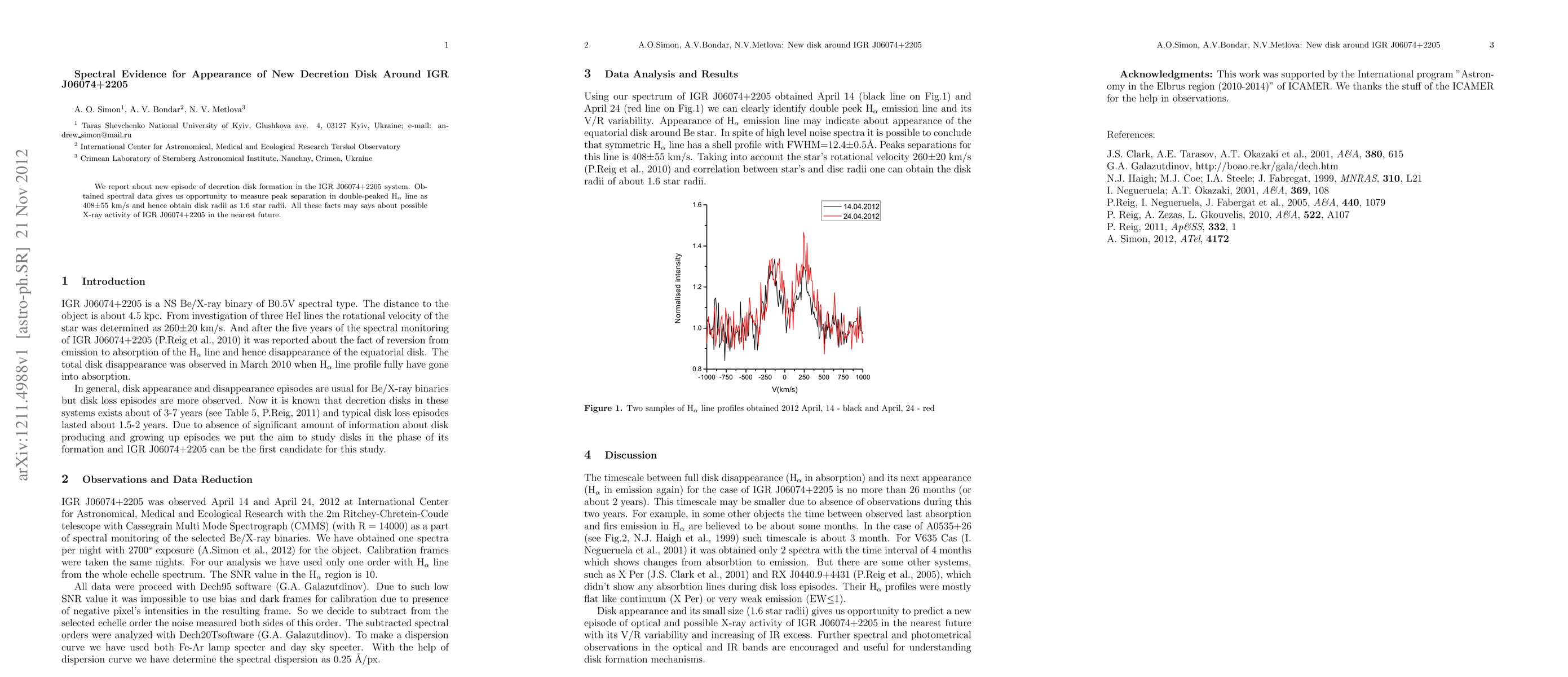 The research used a spectroscopic study of the IGR J06074+2205 system, observing the H\alpha line with a 2m Ritchey-Chrètein-Coudé telescope and Cassegrain MultiMode Spectrograph.