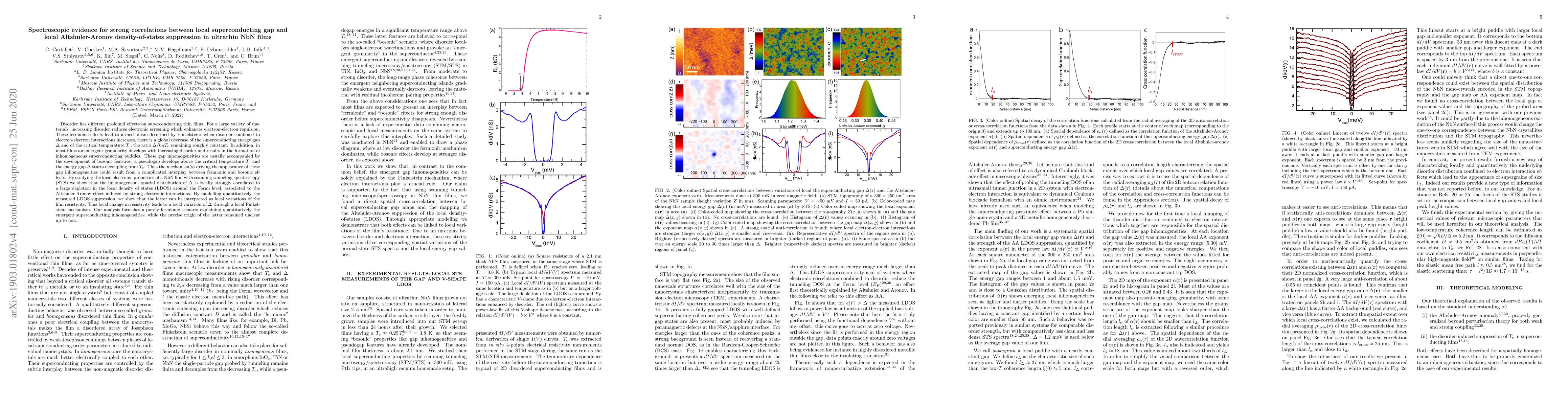 This study uses scanning tunneling spectroscopy to reveal a strong correlation between local superconducting energy gap variations and local density-of-states suppression in ultrathin NbN films, attributing the observed phenomena to a local Finkelstein mechanism driven by fermionic interactions.