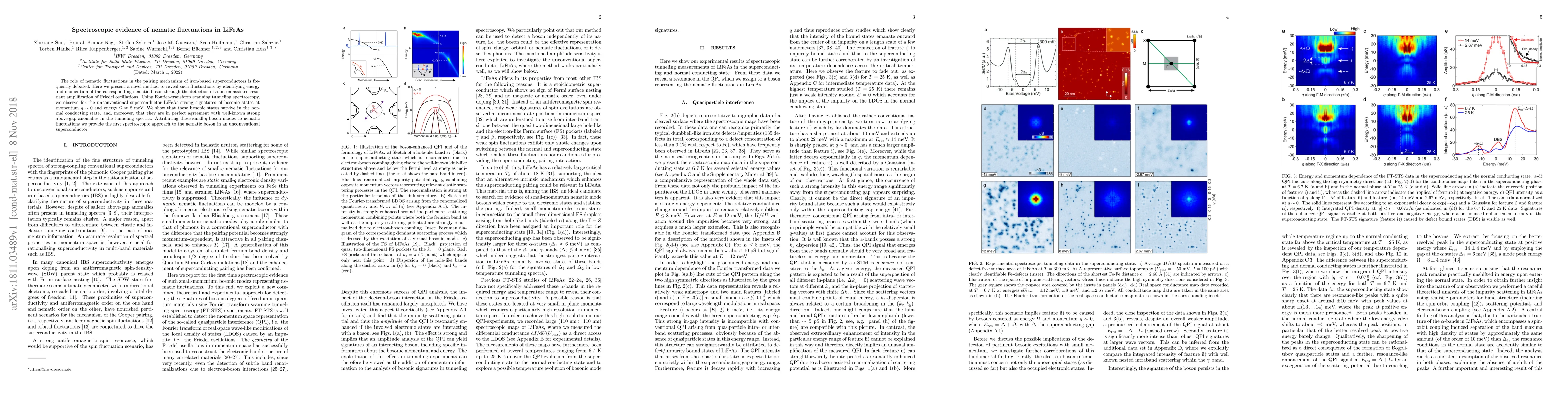This study employs Fourier-transform scanning tunneling spectroscopy to detect nematic fluctuations in LiFeAs, identifying bosonic states at $q\sim 0$ and $\Omega\approx8$~meV, which correlate with above-gap anomalies, providing the first spectroscopic evidence for nematic fluctuations in unconventional superconductors.