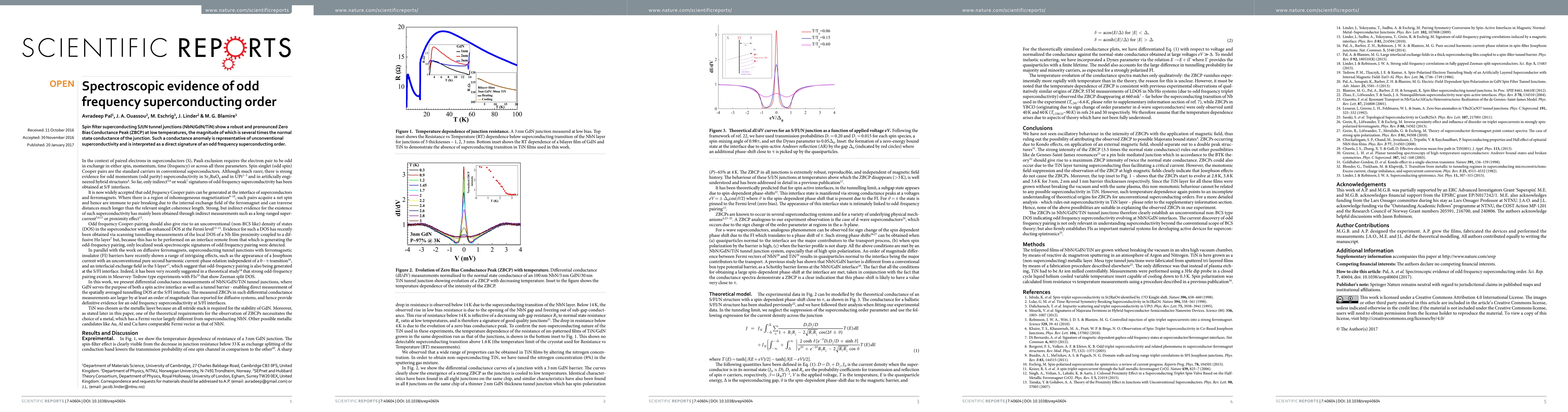 Spin filter superconducting S/I/N tunnel junctions (NbN/GdN/TiN) show a robust and pronounced zero bias conductance peak at low temperatures, the magnitude of which is several times the normal state conductance of the junction. Such a conductance anomaly is representative of unconventional superconductivity and is interpreted as a direct signature of an odd frequency superconducting order.