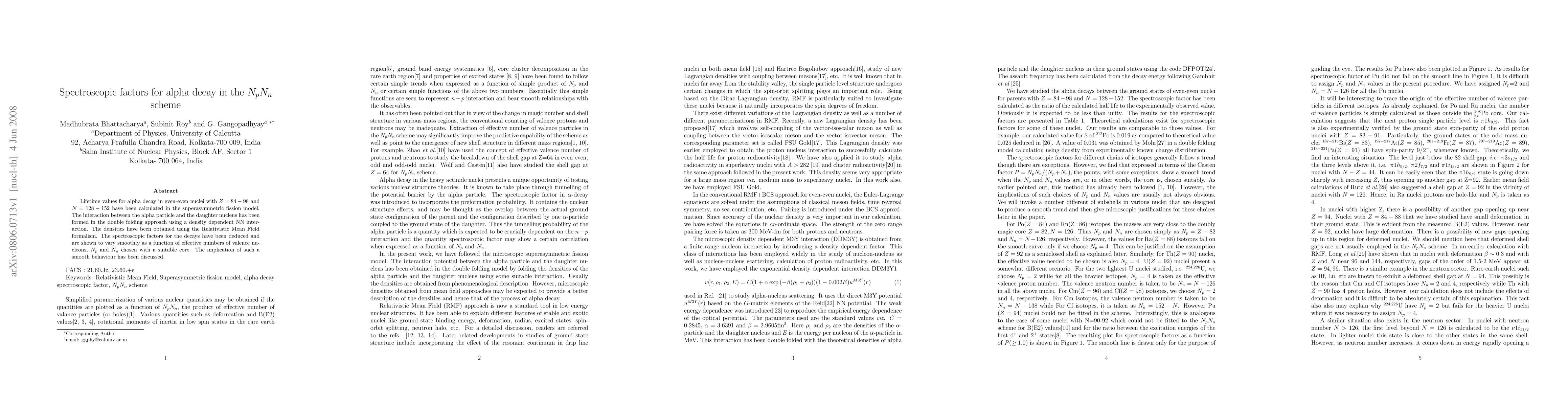 Researchers calculated alpha decay lifetimes in even-even nuclei using a superasymmetric fission model, finding that spectroscopic factors vary smoothly with the number of valence nucleons in the nucleus.