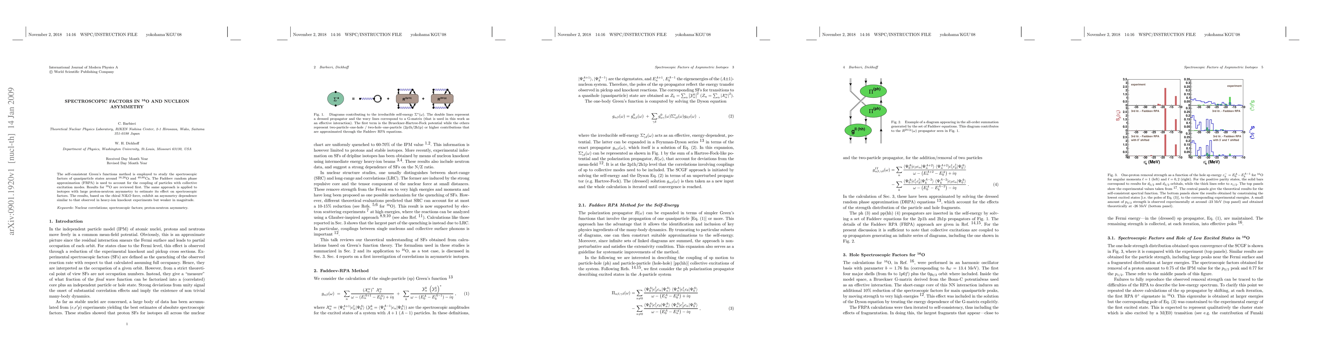 This paper uses the self-consistent Green's functions method and the Faddeev random phase approximation to study the spectroscopic factors of quasiparticle states in 16O, 28O, 40Ca, and 60Ca. It finds that nucleon asymmetry in isotopes affects spectroscopic factors, though the effect is weaker than observed in heavy-ion experiments.