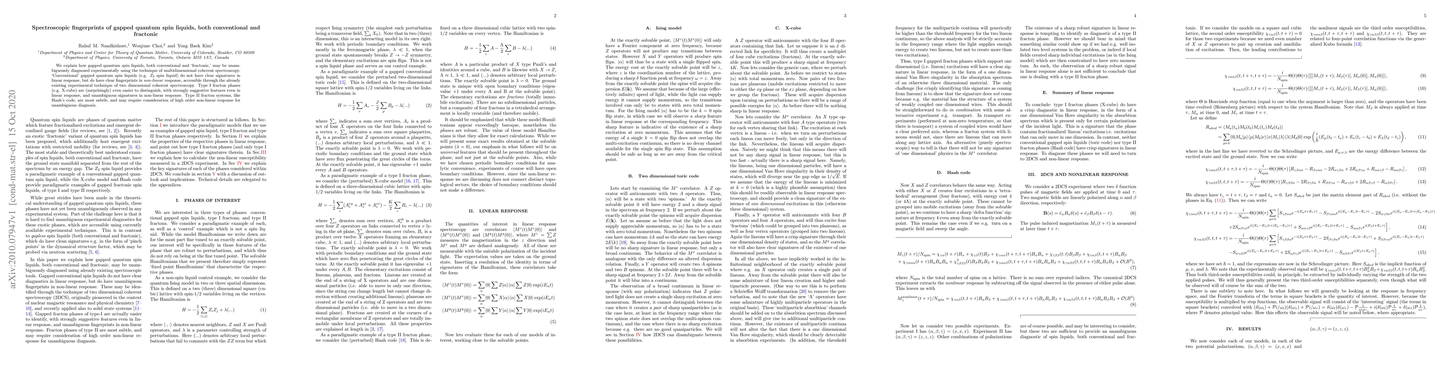This paper discusses the use of multidimensional coherent spectroscopy to identify gapped quantum spin liquids, both conventional and fractonic, through their unique spectroscopic fingerprints. Conventional spin liquids show clear non-linear response signatures, while fracton phases exhibit more pronounced features in both linear and non-linear responses, with Type I fractons being the most easily distinguishable.