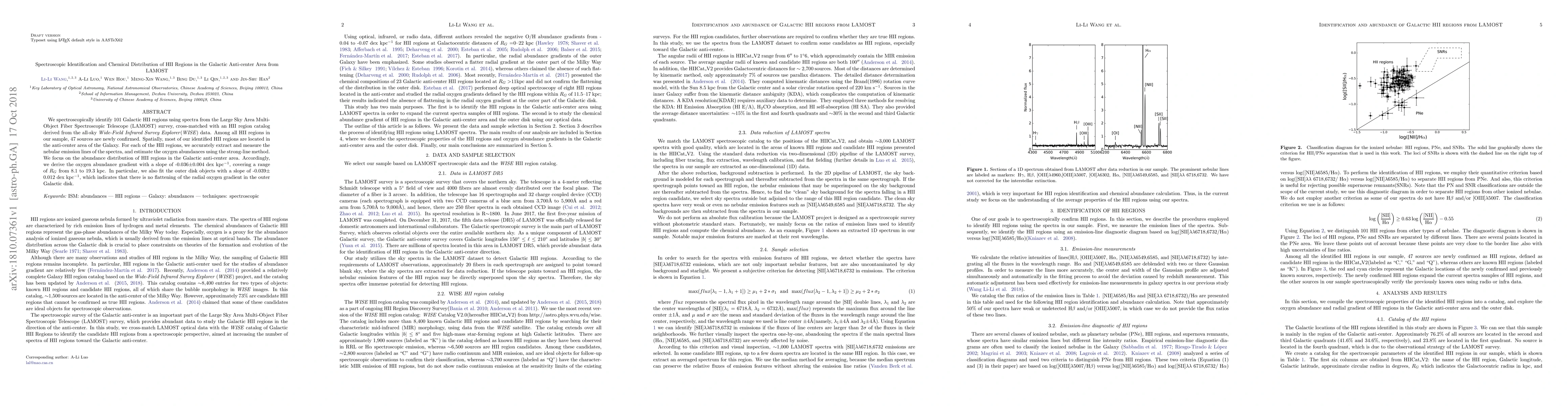 This study identifies 101 Galactic HII regions using LAMOST spectroscopic data, confirming 47 new sources, and analyzes their chemical distribution in the anti-center area. The research derives an oxygen abundance gradient of -0.036 +/- 0.004 dex/kpc, showing no flattening in the outer disk.