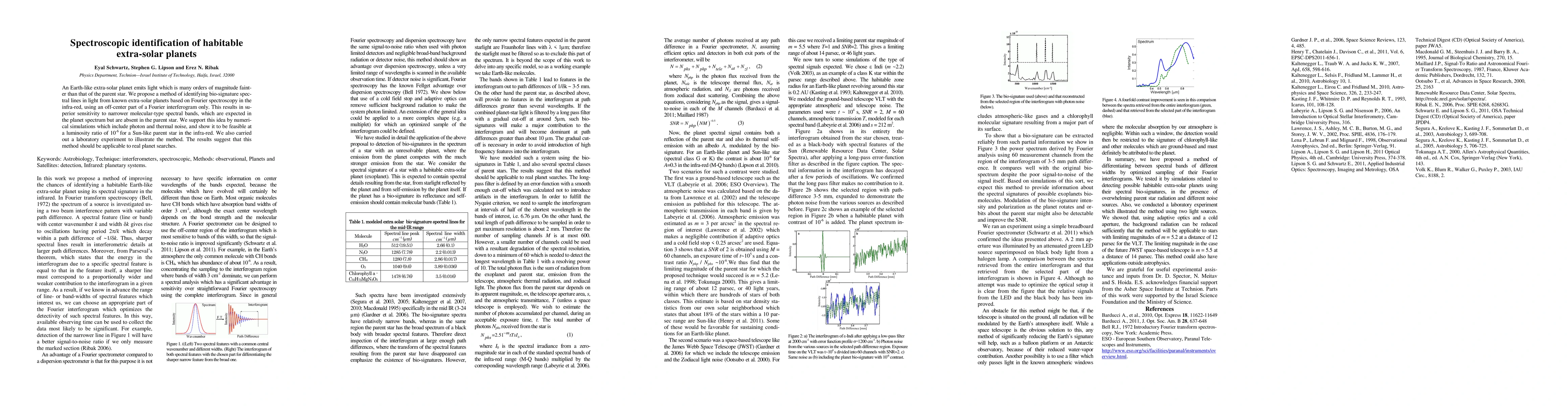An Earth-like extra-solar planet emits light which is many orders of magnitude fainter than that of the parent star. We propose a method of identifying bio-signature spectral lines in light from known extra-solar planets based on Fourier spectroscopy in the infra-red, using an off-center part of a Fourier interferogram only. This results in superior sensitivity to narrower molecular-type spectral bands, which are expected in the planet spectrum but are absent in the parent star. We support this idea by numerical simulations which include photon and thermal noise, and show it to be feasible at a luminosity ratio of 10^-6 for a Sun-like parent star in the infra-red. We also carried out a laboratory experiment to illustrate the method. The results suggest that this method should be applicable to real planet searches.