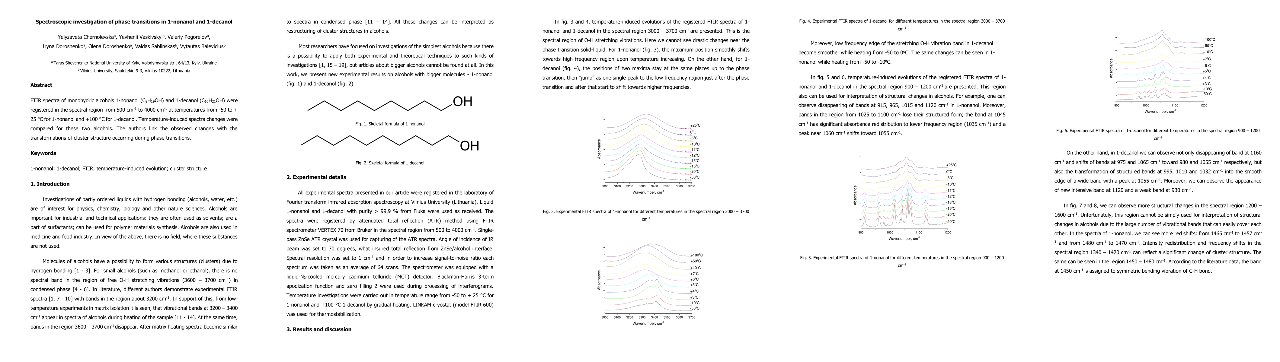 FTIR spectra of monohydric alcohols 1-nonanol (C9H19OH) and 1-decanol (C10H21OH) were registered in the spectral region from 500 cm-1 to 4000 cm-1 at temperatures from -50 to + 25 {\deg}C for 1-nonanol and +100 {\deg}C for 1-decanol. Temperature-induced spectra changes were compared for these two alcohols. The authors link the observed changes with the transformations of cluster structure occurring during phase transitions.