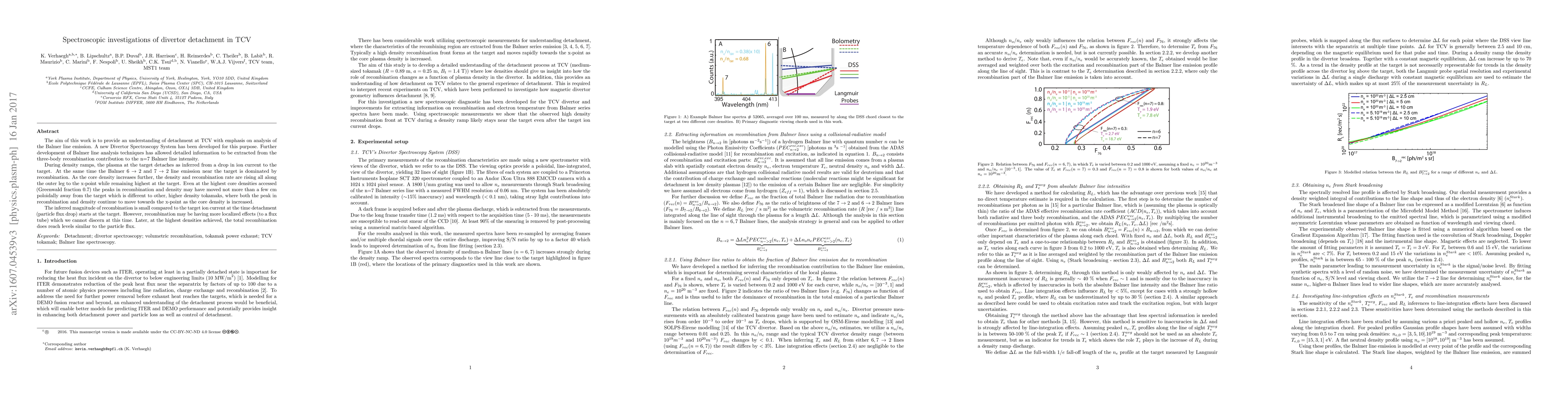 Researchers investigated divertor detachment in TCV using a new spectroscopy system, finding that recombination plays a key role in the process, especially at lower core densities.