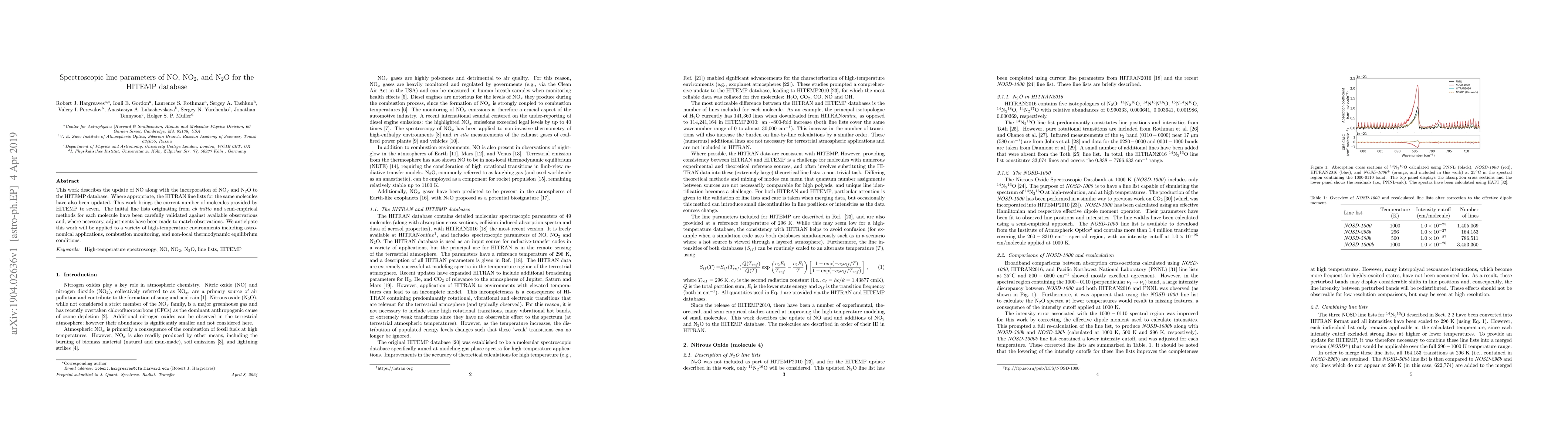 This work describes the update of NO along with the incorporation of NO$_{2}$ and N$_{2}$O to the HITEMP database. Where appropriate, the HITRAN line lists for the same molecules have also been updated. This work brings the current number of molecules provided by HITEMP to seven. The initial line lists originating from \textit{ab initio} and semi-empirical methods for each molecule have been carefully validated against available observations and, where necessary, adjustments have been made to match observations. We anticipate this work will be applied to a variety of high-temperature environments including astronomical applications, combustion monitoring, and non-local thermodynamic equilibrium conditions.