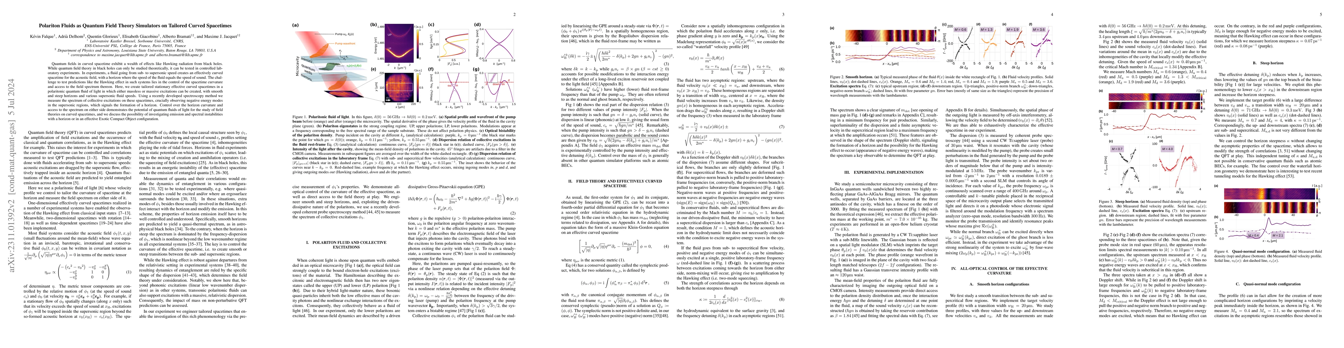 This paper explores the creation of effectively curved spacetimes in a polaritonic fluid of light, using spectroscopy to measure the excitation spectrum and observe negative energy modes, thereby demonstrating the potential of quantum fluids of light for studying quantum field theories in curved spacetimes.