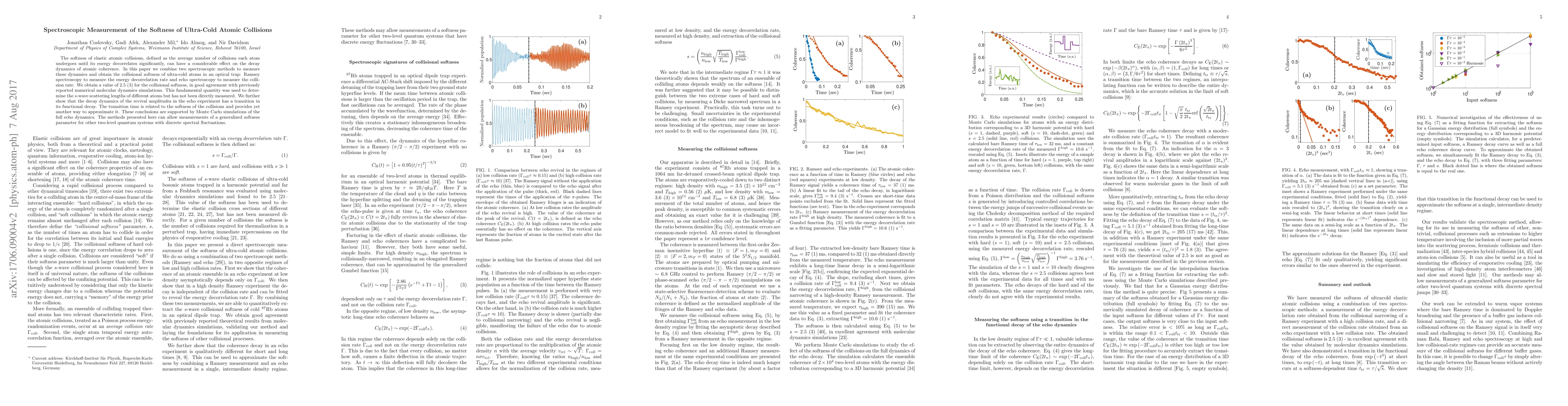 The softness of elastic atomic collisions, defined as the average number of collisions each atom undergoes until its energy decorrelates significantly, can have a considerable effect on the decay dynamics of atomic coherence. In this paper we combine two spectroscopic methods to measure these dynamics and obtain the collisional softness of ultra-cold atoms in an optical trap: Ramsey spectroscopy to measure the energy decorrelation rate and echo spectroscopy to measure the collision rate. We obtain a value of 2.5 (3) for the collisional softness, in good agreement with previously reported numerical molecular dynamics simulations. This fundamental quantity was used to determine the $s$-wave scattering lengths of different atoms but has not been directly measured. We further show that the decay dynamics of the revival amplitudes in the echo experiment has a transition in its functional decay. The transition time is related to the softness of the collisions and provides yet another way to approximate it. These conclusions are supported by Monte Carlo simulations of the full echo dynamics. The methods presented here can allow measurements of a generalized softness parameter for other two-level quantum systems with discrete spectral fluctuations.
