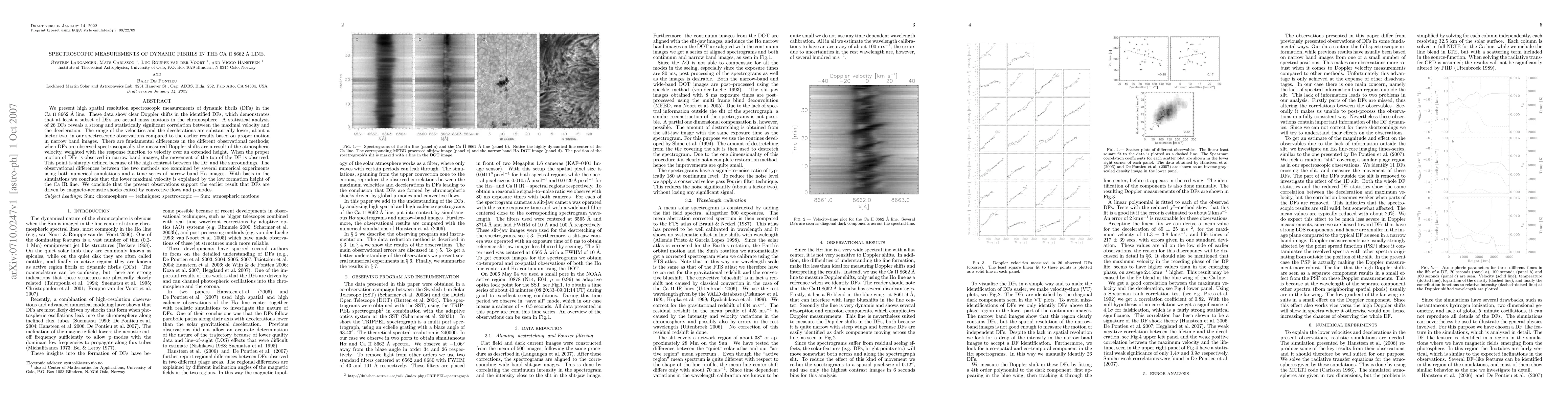 Researchers studied dynamic fibrils in the Ca II 8662 line using spectroscopy, finding that some fibrils show clear Doppler shifts indicating mass motion in the chromosphere. The study supports earlier results on the formation of these fibrils driven by magneto-acoustic shocks.