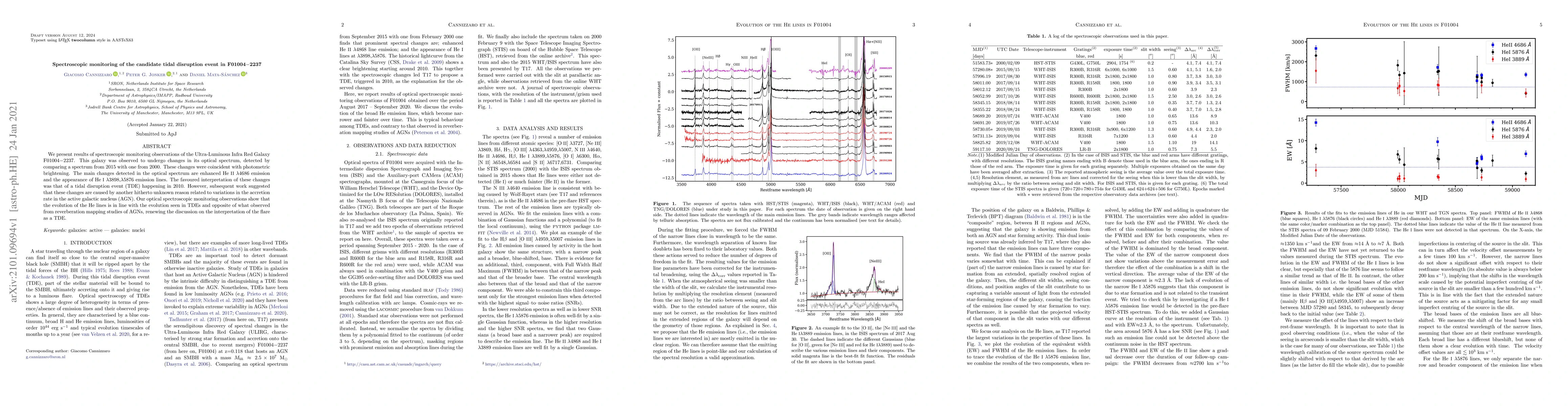 We present results of spectroscopic monitoring observations of the Ultra-Luminous Infra Red Galaxy F01004-2237. This galaxy was observed to undergo changes in its optical spectrum, detected by comparing a spectrum from 2015 with one from 2000. These changes were coincident with photometric brightening. The main changes detected in the optical spectrum are enhanced He II $\lambda$4686 emission and the appearance of He I $\lambda$3898,$\lambda$5876 emission lines. The favoured interpretation of these changes was that of a tidal disruption event (TDE) happening in 2010. However, subsequent work suggested that these changes are caused by another hitherto unknown reason related to variations in the accretion rate in the active galactic nucleus (AGN). Our optical spectroscopic monitoring observations show that the evolution of the He lines is in line with the evolution seen in TDEs and opposite of what observed from reverberation mapping studies of AGNs, renewing the discussion on the interpretation of the flare as a TDE.