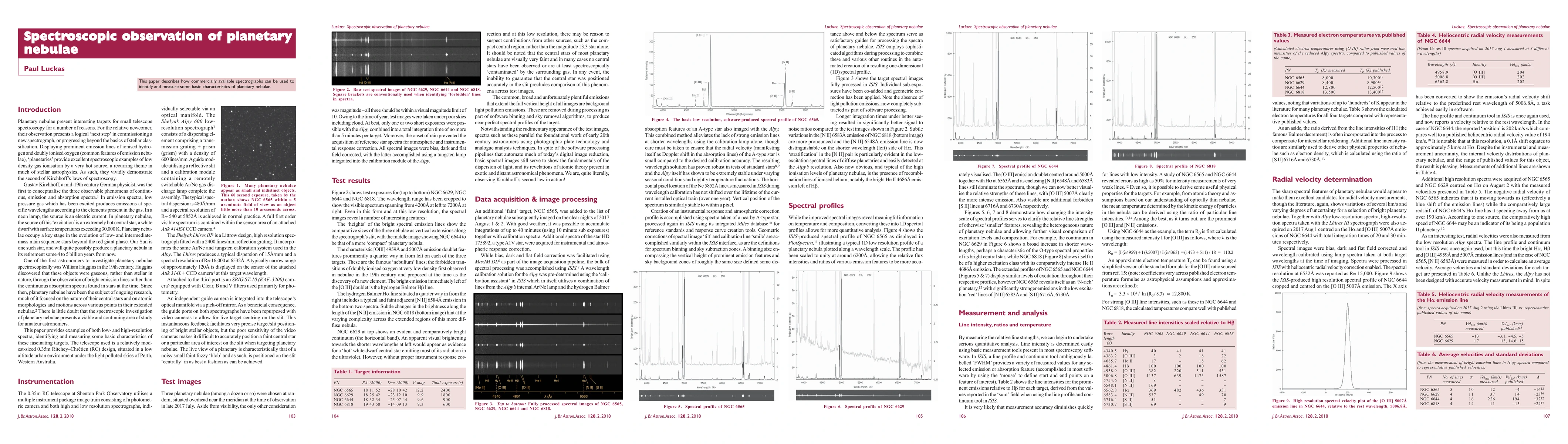 This paper demonstrates the use of commercially available spectrographs to identify and measure fundamental characteristics of planetary nebulae, providing valuable insights into their composition and structure.