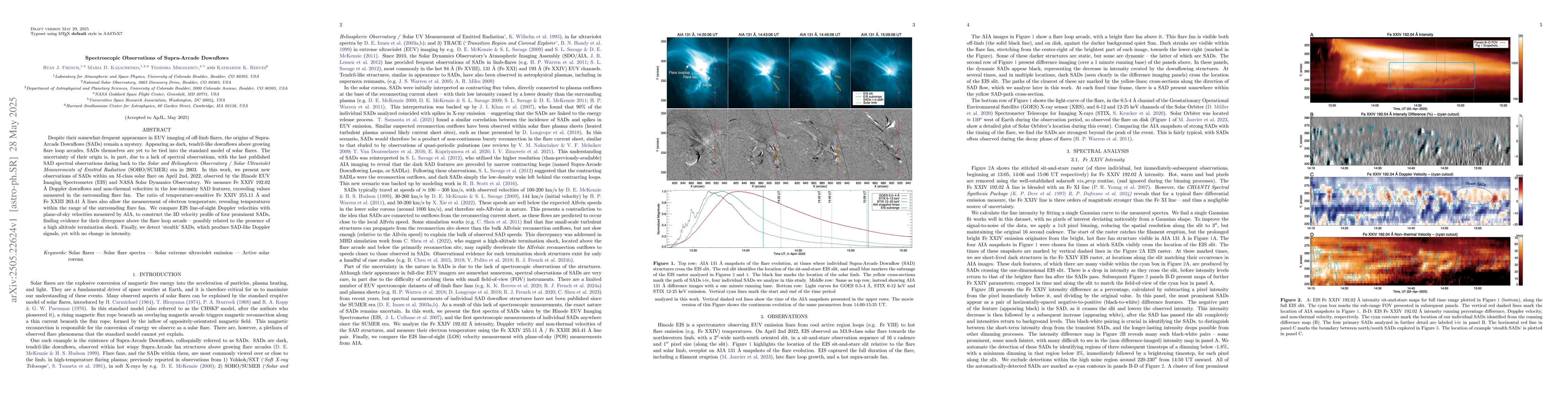 The research utilized the Hinode EUV Imaging Spectrometer (EIS) and NASA Solar Dynamics Observatory to observe an M-class solar flare on April 2nd, 2022, focusing on Supra-Arcade Downflows (SADs).