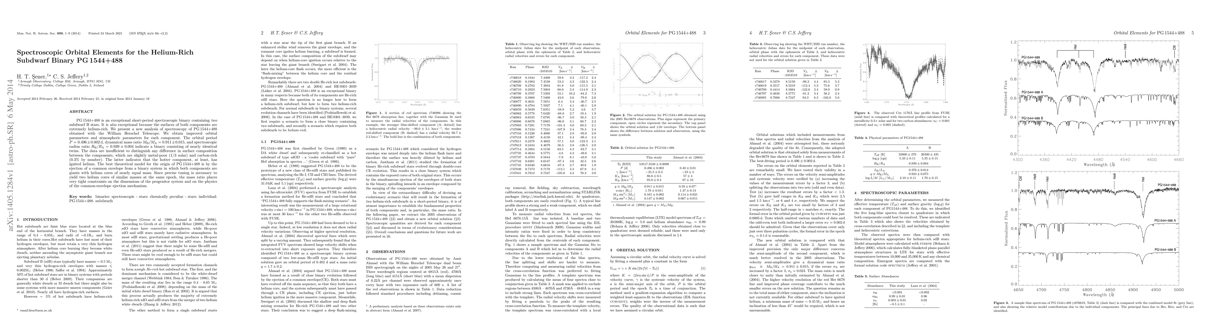 PG1544+488 is an exceptional short-period spectroscopic binary containing two subdwarf B stars. It is also exceptional because the surfaces of both components are extremely helium-rich. We present a new analysis of spectroscopy of PG1544+488 obtained with the William Herschel Telescope. We obtain improved orbital parameters and atmospheric parameters for each component. The orbital period $P=0.496\pm0.002$\,d, dynamical mass ratio $M_{\rm B}/M_{\rm A}=0.911\pm0.015$, and spectroscopic radius ratio $R_{\rm B}/R_{\rm A}=0.939\pm0.004$ indicate a binary consisting of nearly identical twins. The data are insufficient to distinguish any difference in surface composition between the components, which are slightly metal-poor (1/3 solar) and carbon-rich (0.3% by number). The latter indicates that the hotter component, at least, has ignited helium. The best theoretical model for the origin of PG1544+488 is by the ejection of a common envelope from a binary system in which both components are giants with helium cores of nearly equal mass. Since precise tuning is necessary to yield two helium cores of similar masses at the same epoch, the mass ratio places very tight constraints on the dimensions of the progenitor system and on the physics of the common-envelope ejection mechanism.