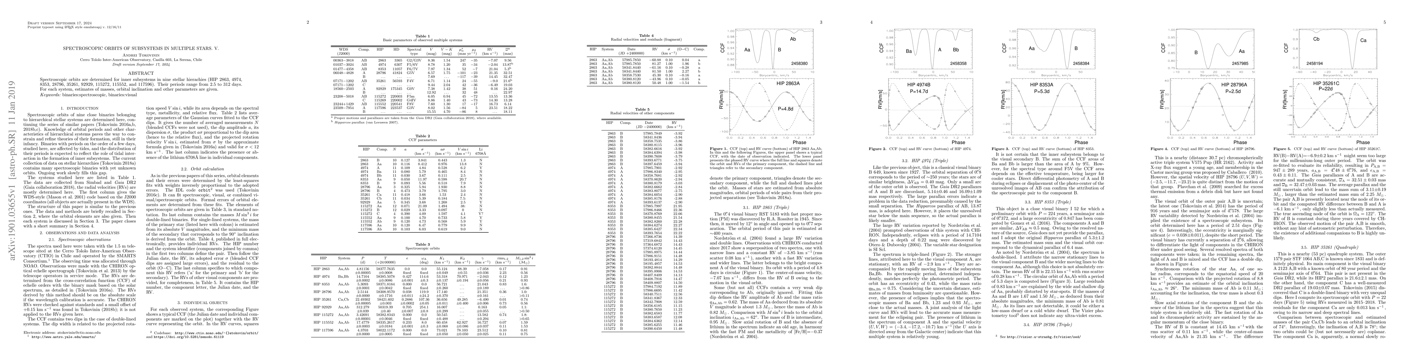 Spectroscopic orbits are determined for inner subsystems in nine stellar hierachies (HIP 2863, 4974, 8353, 28796, 35261, 92929, 115272, 115552, and 117596). Their periods range from 2.5 to 312 days. For each system, estimates of masses, orbital inclination and other parameters are given.