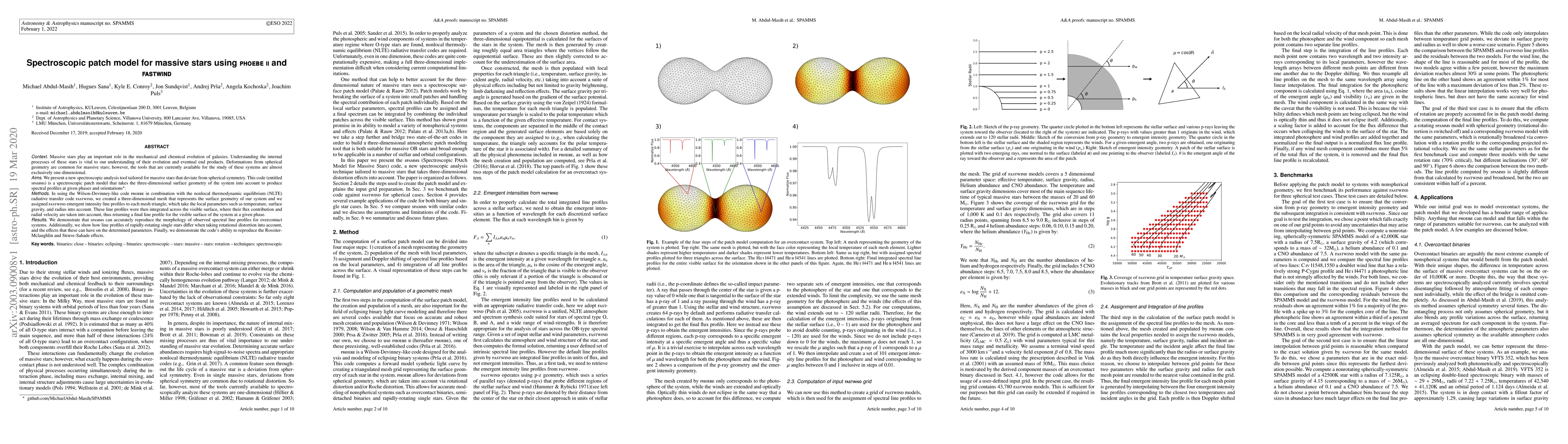 Massive stars play an important role in the mechanical and chemical evolution of galaxies. Understanding the internal processes of these stars is vital to our understanding of their evolution and eventual end products. Deformations from spherical geometry are common for massive stars; however, the tools that are currently available for the study of these systems are almost exclusively one-dimensional. We present a new spectroscopic analysis tool tailored for massive stars that deviate from spherical symmetry. This code (entitled SPAMMS) is a spectroscopic patch model that takes the three-dimensional surface geometry of the system into account to produce spectral profiles at given phases and orientations. In using the Wilson-Devinney-like code PHOEBE in combination with the non local thermodynamic equilibrium (NLTE) radiative transfer code FASTWIND, we created a three-dimensional mesh that represents the surface geometry of our system and we assigned FASTWIND emergent intensity line profiles to each mesh triangle, which take the local parameters such as temperature, surface gravity, and radius into account. These line profiles were then integrated across the visible surface, where their flux contribution and radial velocity are taken into account, thus returning a final line profile for the visible surface of the system at a given phase. We demonstrate that SPAMMS can accurately reproduce the morphology of observed spectral line profiles for overcontact systems. Additionally, we show how line profiles of rapidly-rotating single stars differ when taking rotational distortion into account, and the effects that these can have on the determined parameters. Finally, we demonstrate the code's ability to reproduce the Rossiter-Mclaughlin and Struve-Sahade effects.