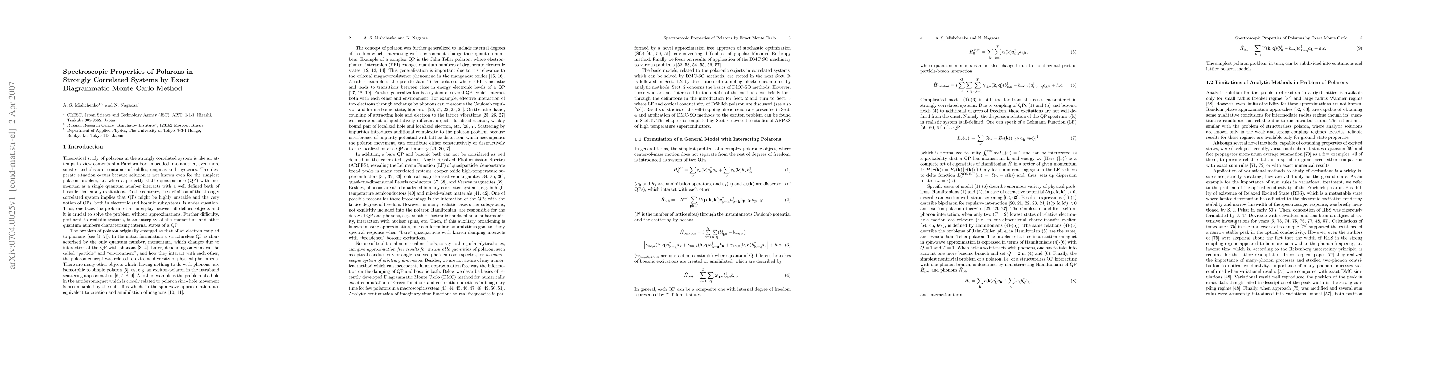 This paper utilizes Diagrammatic Monte Carlo and Stochastic Optimization to calculate the Matsubara Green function and analytically continue to real frequencies, providing exact numeric results on ground state properties, spectral functions, and optical conductivity of various strongly correlated electron-phonon systems, including Frohlich polarons and exciton-polarons.