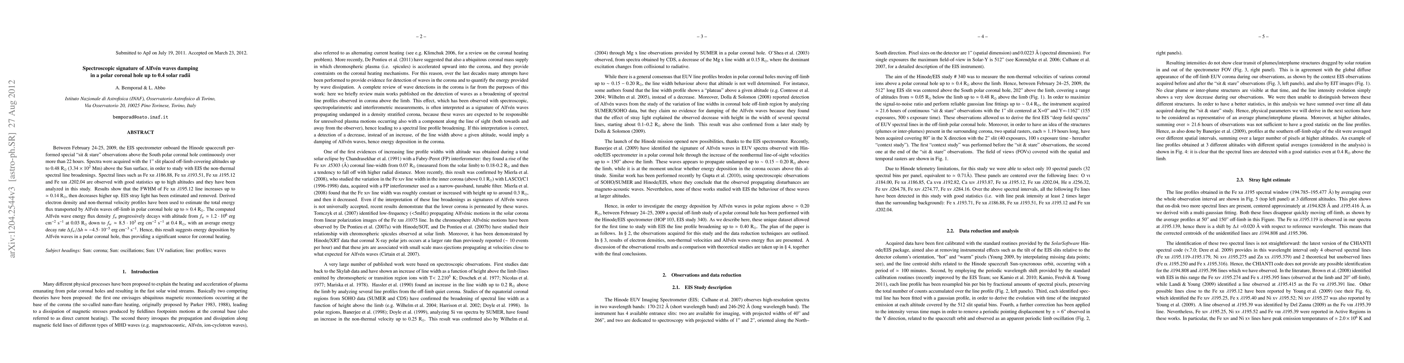This study uses Hinode's EIS spectrometer to analyze the damping of Alfvén waves in a polar coronal hole up to 0.4 solar radii. The observed spectral line broadenings indicate a decay in Alfvén wave energy flux from 1.2 x 10^6 erg cm$^{-2}$ s$^{-1}$ at lower altitudes to 8.5 x 10^3 erg cm$^{-2}$ s$^{-1}$ at higher altitudes, suggesting significant energy deposition and potential heating of the coronal plasma.
