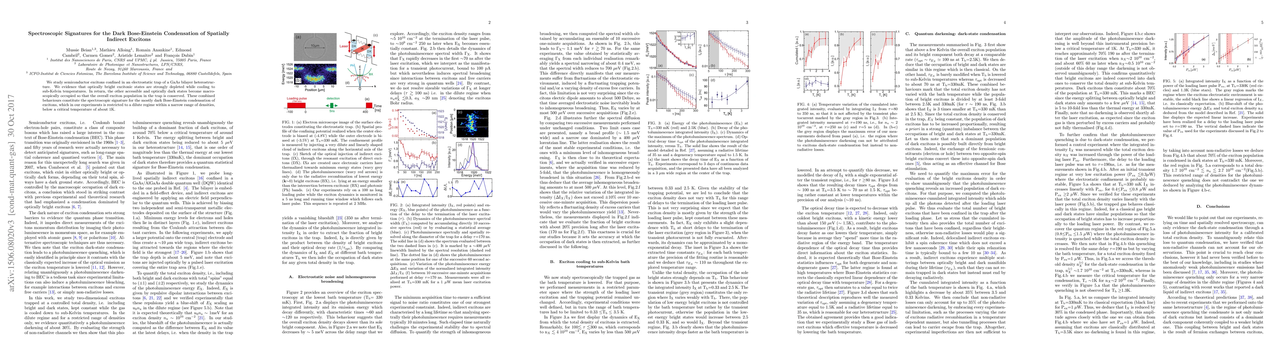 This paper investigates the spectroscopic signatures of dark Bose-Einstein condensation in spatially indirect excitons in a GaAs bilayer heterostructure. It reveals that while bright excitonic states are depleted, dark states become macroscopically occupied upon cooling, indicating a mostly dark condensation phenomenon occurring in a dilute regime below 1K.