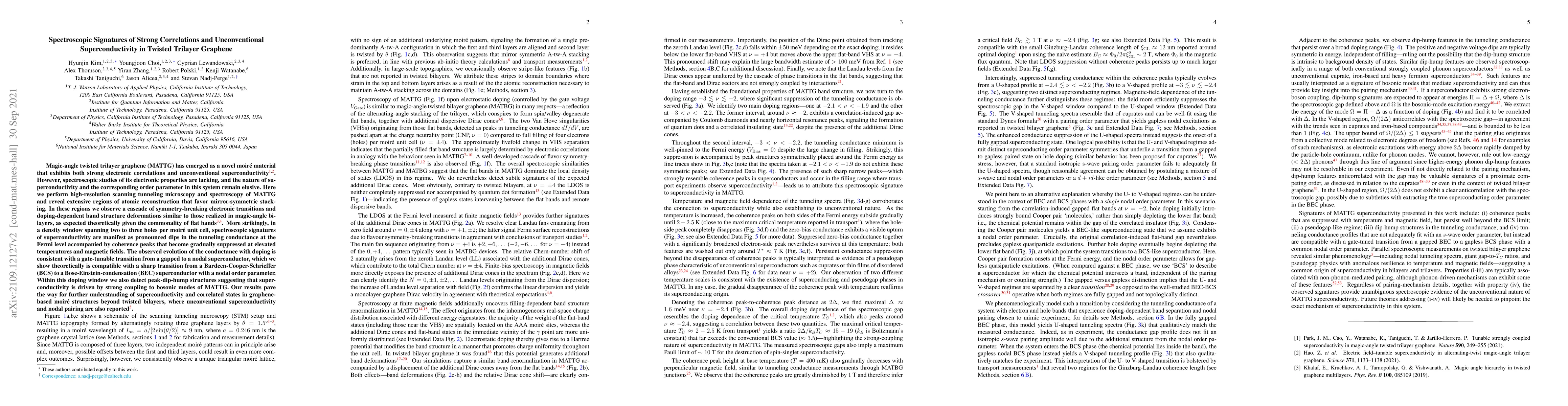 This paper uses high-resolution scanning tunneling microscopy to investigate the electronic properties of magic-angle twisted trilayer graphene, revealing extensive atomic reconstruction and a cascade of electronic transitions. It identifies spectroscopic signatures of unconventional superconductivity within a specific doping range, suggesting a transition from BCS to BEC superconductivity with a nodal order parameter.