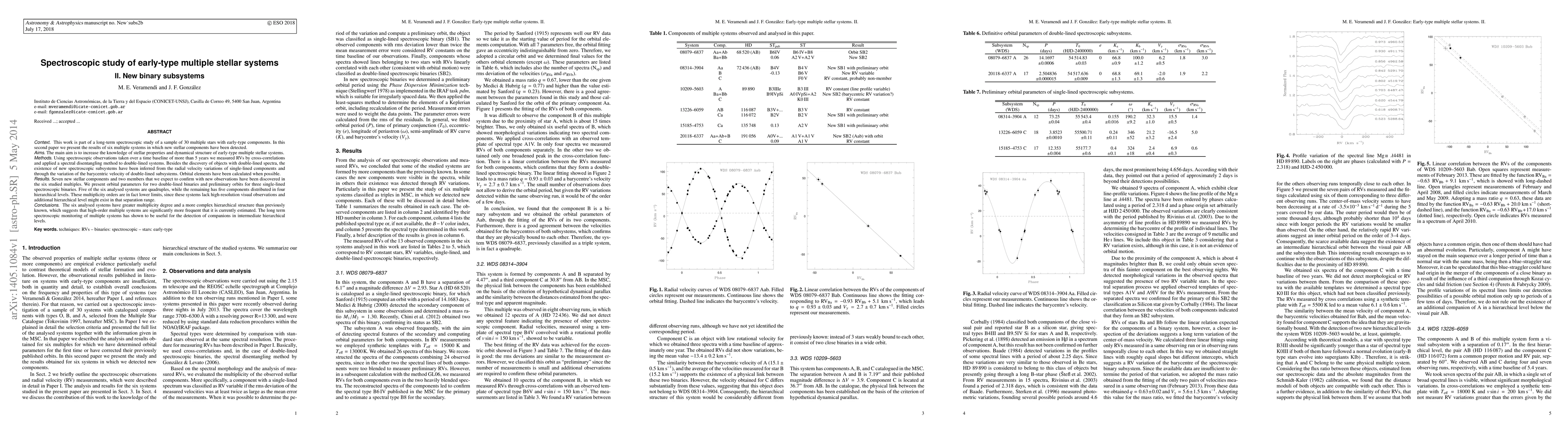 This study reveals new binary subsystems in six multiple star systems, enhancing understanding of early-type stellar systems' properties and dynamics. The spectroscopic monitoring discovered seven new stellar components and suggests higher-order multiplicity than previously estimated.