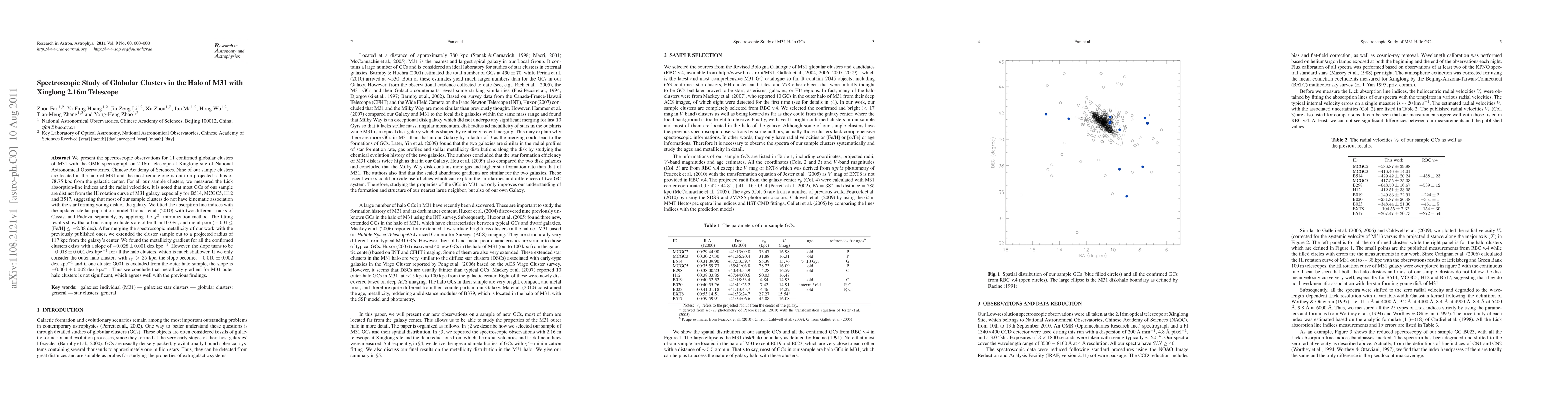 This study uses the Xinglong 2.16m telescope to spectroscopically analyze 11 globular clusters in M31's halo, finding they are older than 10 Gyr and metal-poor. The metallicity gradient in the outer halo is shallow, indicating a non-significant gradient in M31's outer clusters.