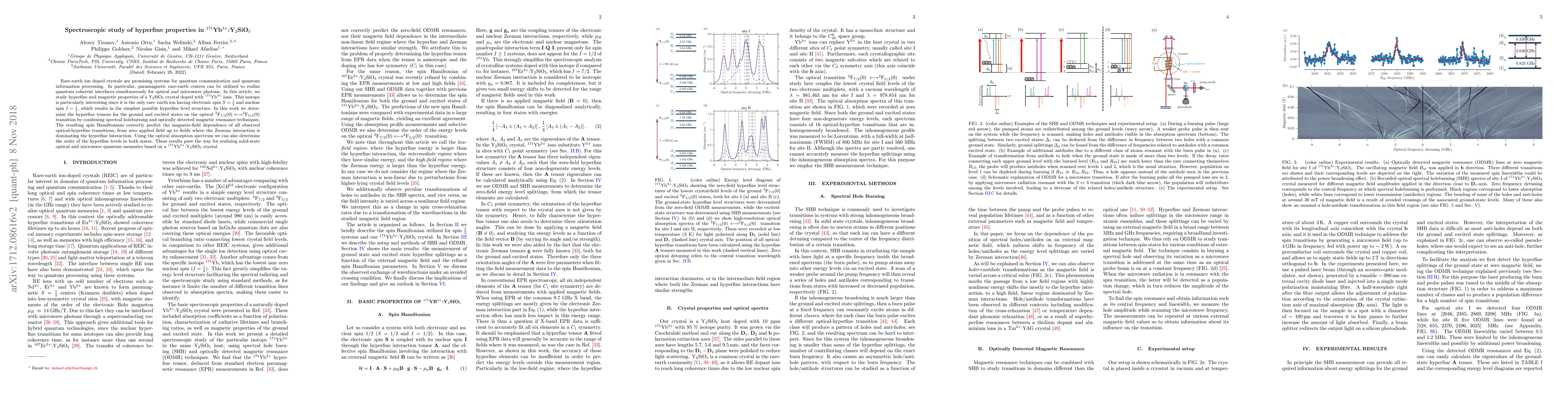This paper investigates the hyperfine and magnetic properties of $^{171}$Yb$^{3+}$ ions in Y$_2$SiO$_5$ crystals, determining the hyperfine tensors for optical transitions using spectral holeburning and optically detected magnetic resonance. The findings provide a foundation for developing solid-state quantum memories combining optical and microwave quantum interfaces.